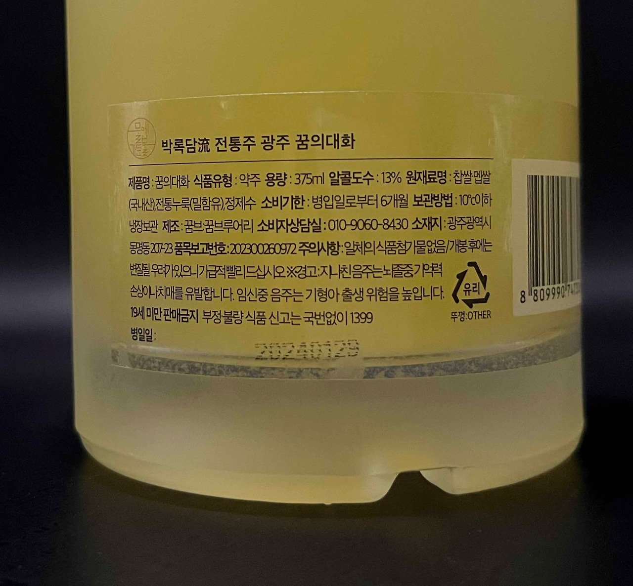 제품의 용량은 375ML, 도수는 13도, 가격은 25,000원. 혼자 마시기에도, 둘이 마시기에도 나쁘지 않은 양과 부담스럽지 않은 알코올 함유량, 애주가가 아니라면 한 병 가격치곤 망설여지는 값을 지녔다. 물론, 애주가라고 하여도 절대 편한 금액은 아니다.