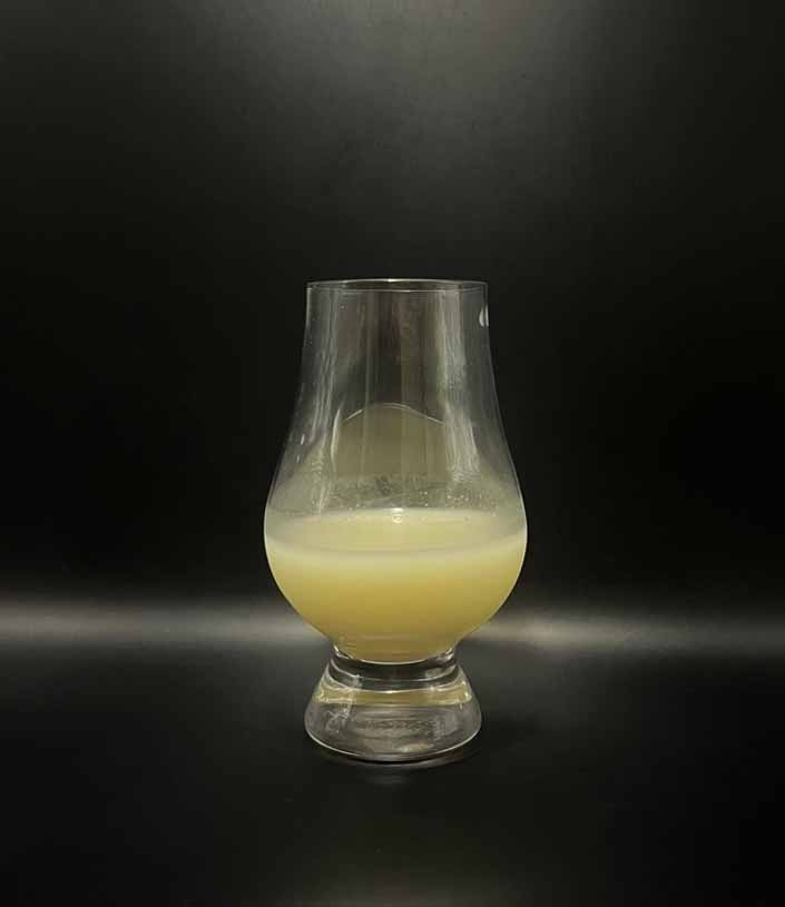 잔에 따른 술은 흡사 우유라도 된 것 마냥 순백의 빛깔을 띄고 있다. 병 밖에서 보던 것보다 더 깨끗하고 밝게 느껴지는 상아색을 지니고 있으며,