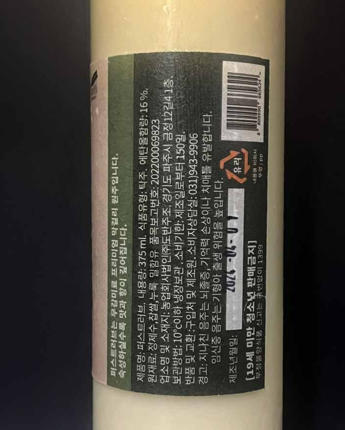 제품의 용량은 375ML, 도수는 16도, 가격은 21,000원. 혼자 마셔도 좋고, 둘이 마셔도 괜찮은 양에 막걸리치곤 상당히 높은 알코올 함유량, 쉽사리 구매하기엔 망설여지는 금액을 지녔다. 분명히 몇 년 전만 하여도 10,000원이 넘어가는 막걸리를 찾기 힘들었던 것 같은데, 언제 이리 몸값을 다들 올렸는지 참 의문이다.