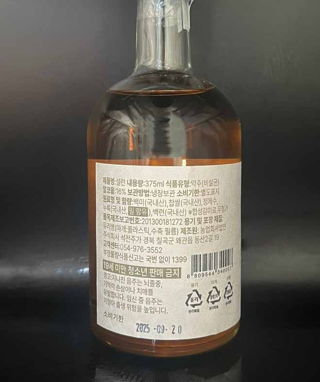 '설련'의 용량은 375ML, 도수는 16도, 가격은 18,000원. 혼술 하기에도, 둘이서 간단히 마시기에도 딱 좋은 양에 일반적인 희석식 소주보다 조금 낮은 알콜 함유량, 술 한 병치고는 조금 비싸다고 느낄 수 있는 금액을 가졌다. 물론, 이것은 술을 음주하기 전 생각이며 마신 후에는 오히려 싸게 느껴질지도 모르는 일이긴 하다.