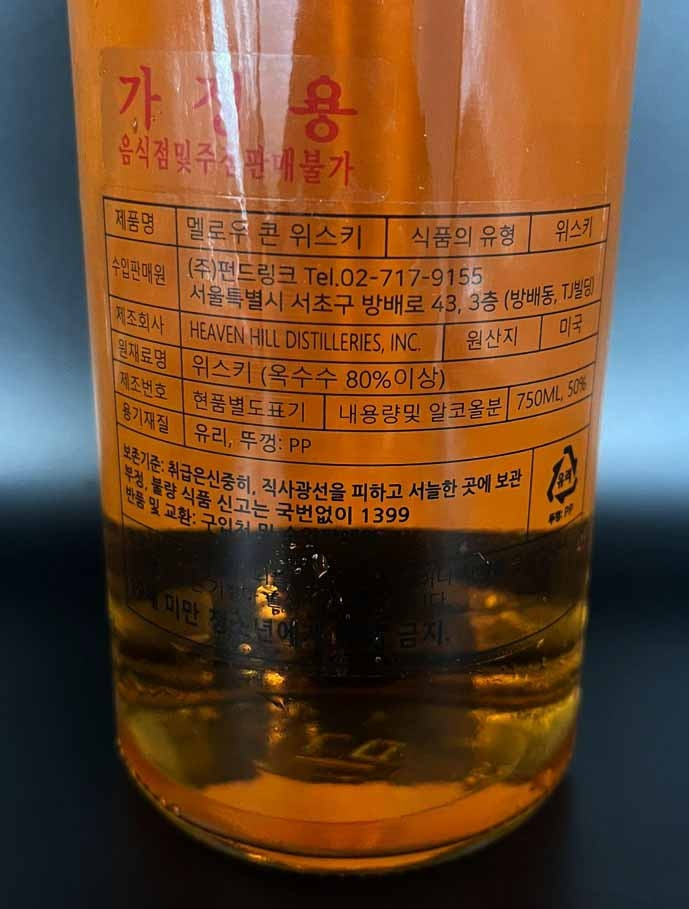 최근 전통주들을 자주 음주했다보니 다른 술들이 좀 생각이 나 오늘은 가성비 넘치는 '콘 위스키'를 한 병 가지고 왔다. '멜로우 콘', 사실 다른 주류들도 여럿 눈에 띄었지만 마침 이 제품이 잔을 세 개나 추가로 증정하는 행사를 하고 있어 도저히 그 유혹을 뿌리치지 못하겠더라. 이름부터 옥수수가 들어가 있는 이 위스키는 과연 어떠한 풍미를 선사할지, 기대와 함께 잔을 들어보도록 하자.