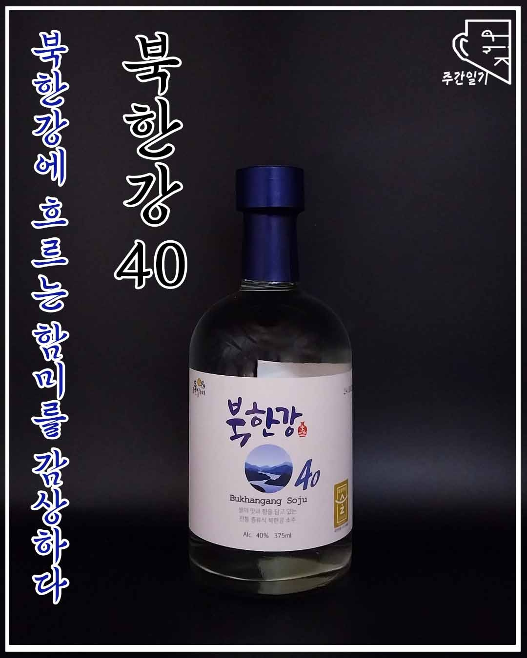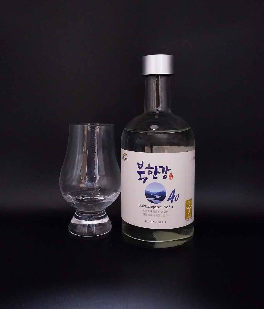 강원도에는 북한강이라는 강이 있다. 이는 북한의 강원도에 있는 금강군 신읍리 단발령에서 발원하여 강원특별자치도와 경기도를 지나 한강으로 흘러가는 하천인데, 이 '북한강'을 원료로 사용한 작품이 있다고 하여 오늘은 그 술을 한 병 들고 오게 되었다. '북한강40', 이름부터 자신의 출신지를 밝히는 듯한 이 소주는 과연 어떠한 향미를 보여줄지, 기대와 함께 음주해 보도록 하자.