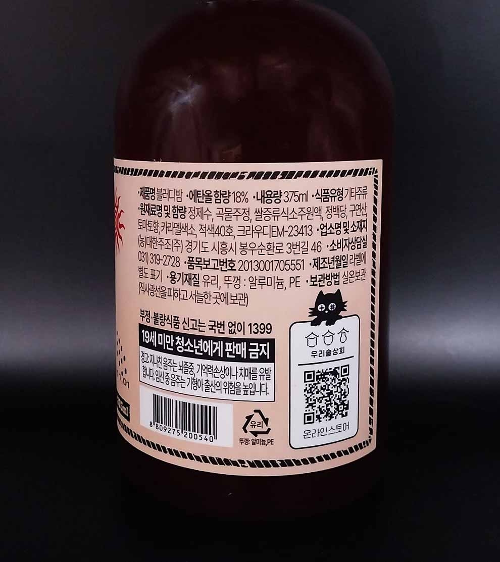 '블러디 밤'은 '우리술상회'에서 MZ세대에 맞춰 출시한 작품으로, 서구권에서 해장술로 사랑받는 칵테일 블러드메리를 닮은 토마토 술이다.