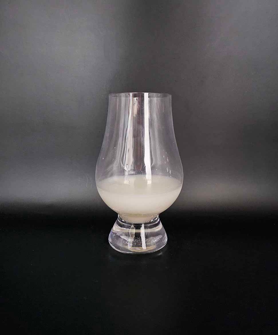 잔의 안에서 처음 만나본 술은 우유를 따른 것마냥 하얗고 뽀얀 빛깔을 뽐낸다. 잔 아랫쪽에는 기포들이 옹기종기 모여 보글거리고 있으며, 별다른 입자감이 보이지 않는 표면은 상당히 맑고 깨끗하다. 참 먹음직스러운 색깔이다.