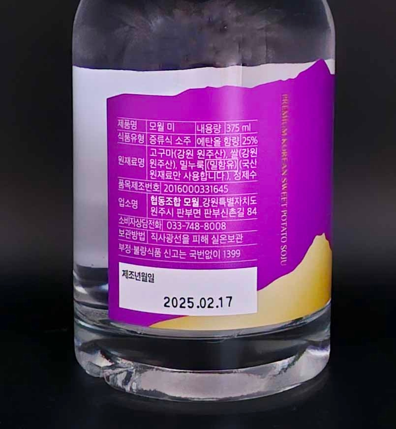 동증류기 상압방식으로 증류한 뒤 초류와 후류를 사용하지 않아 고구마가 가진 매력을 충분히 이끌어내었으며, 풍부한 향기에 더해지는 부드러운 풍미는 일품이라는 단어가 참 잘어울린다고 한다.