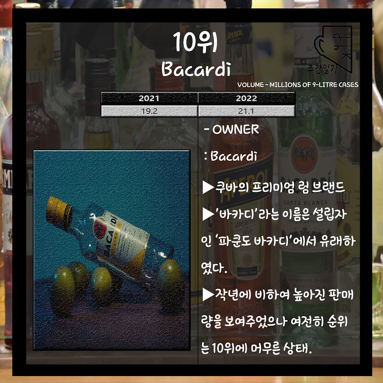 참고로 최대 판매량 럼 타이틀 역시 여전히 탄두에이에게 넘겨둔 상태, 아무래도 좀 더 분발하는 모습이 필요한 바카디이다.