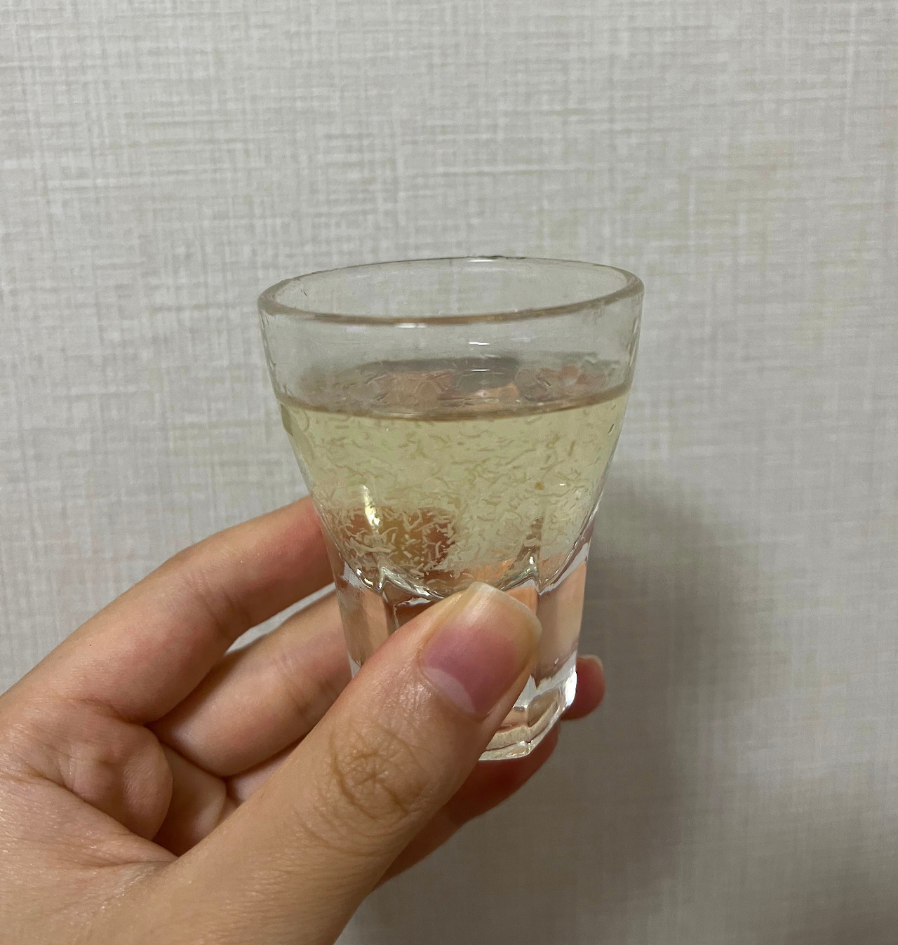 잔에 따른 술의 모습은 병 안으로 보는 것에 비하여 좀 더 직관적으로 아름다움을 자랑한다. 유자차 같기도 하며 노란 바다에 흔들리는 해초처럼 느껴지기도 하는 것이 확실히 오묘한 매력을 지니고 있다.