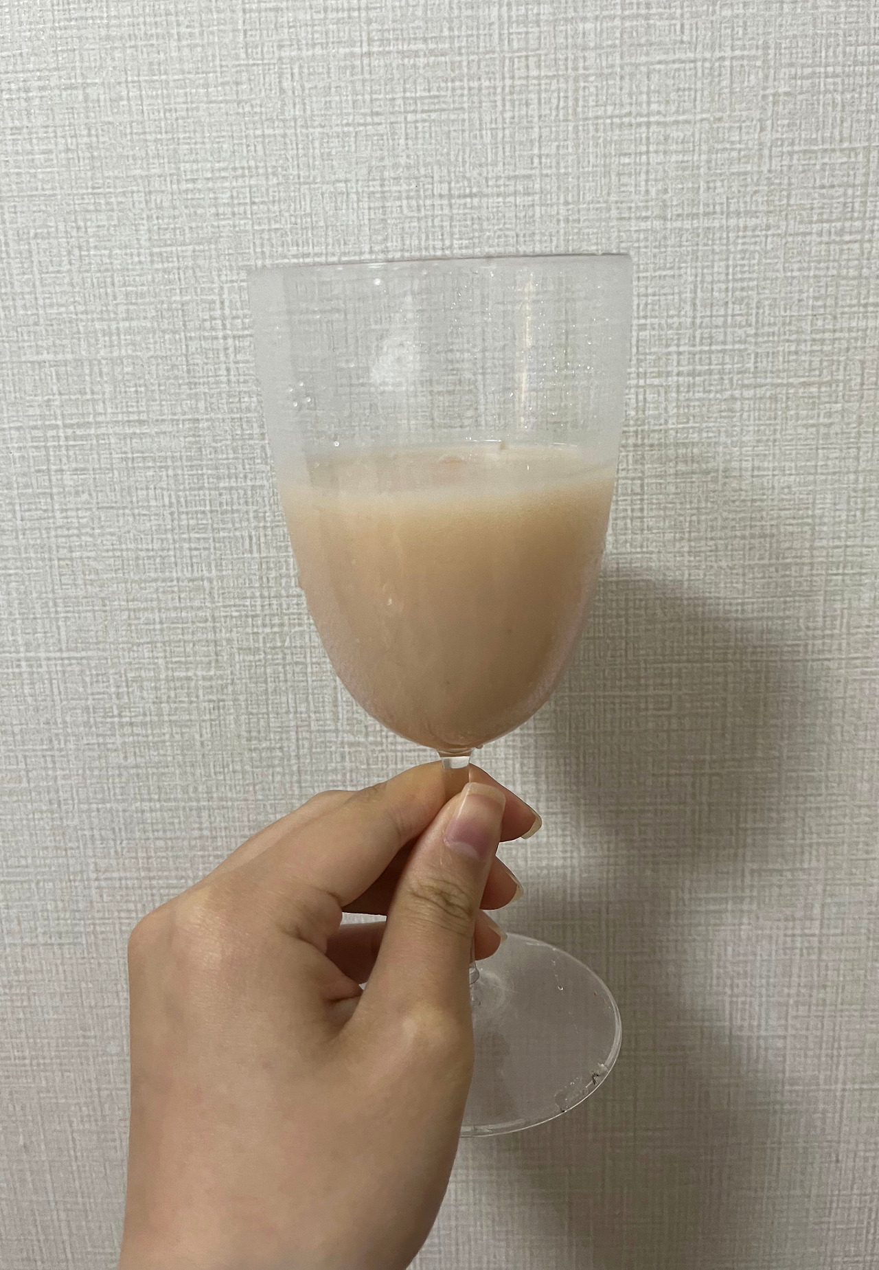 잔에 따른 술의 모습은 약간 옅은 분홍색을 띠고 있다. 살구색과 분홍색의 중간 정도, 이름만큼 반짝이는 색은 아니지만 맛이 기대되는 빛깔이다. 질감 또한 꽤나 눅진하게 떨어지는 것을 보아 달콤하니 혀를 감싸주지 않을까.