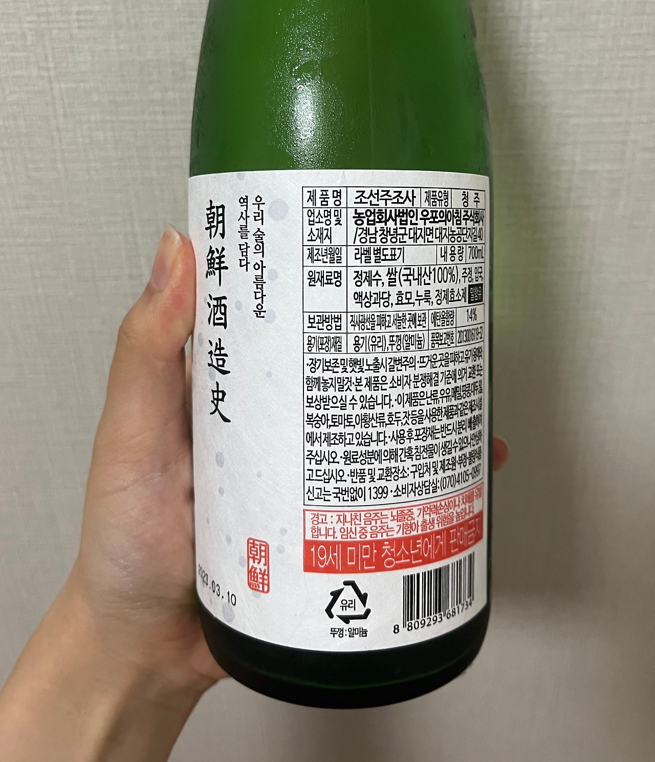 우리나라 청주의 역사를 담은 술, '조선주조사'를 음주해 보았다.