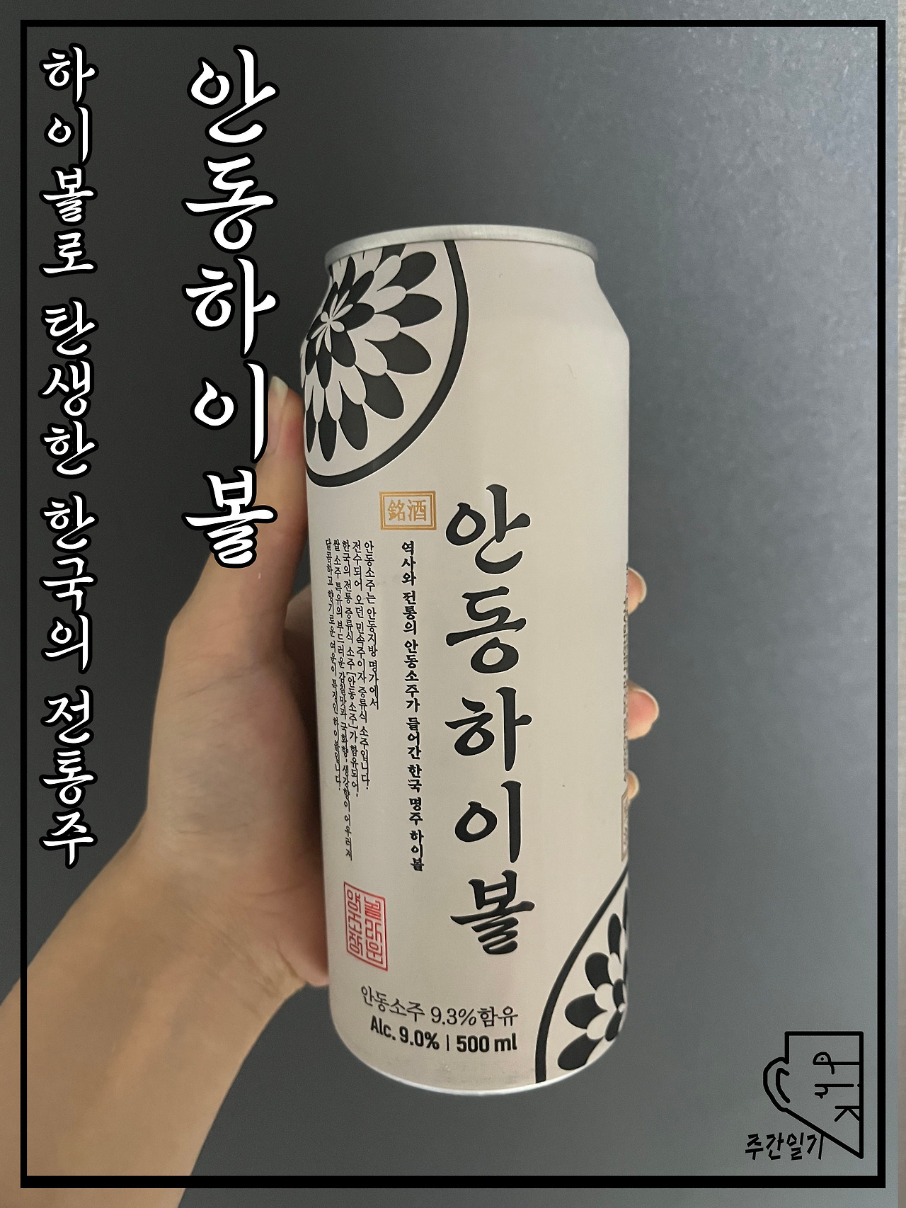 여하튼 그리하여 오늘은 편의점에 갔다가 우연히 발견하게 된 하이볼 한 캔을 들고 왔다. 흔하게 마주치는 하이볼이라면 이렇게 소개까지 하진 않을터인데, 이 술은 특이하게도 '안동소주'를 메인으로 하여 만들어졌다. 여러분이 생각하는 그 안동소주가 맞다. 우리나라의 '전통소주'하면 가장 먼저 떠오르는 술. 경상북도 안동시에서 오랫동안 전해져 내려온 '안동소주'와 하이볼의 만남이라, 도대체 그 맛과 향이 어떨지. 궁금증 가득한 마음과 함께 뚜껑을 열어보도록 하겠다.