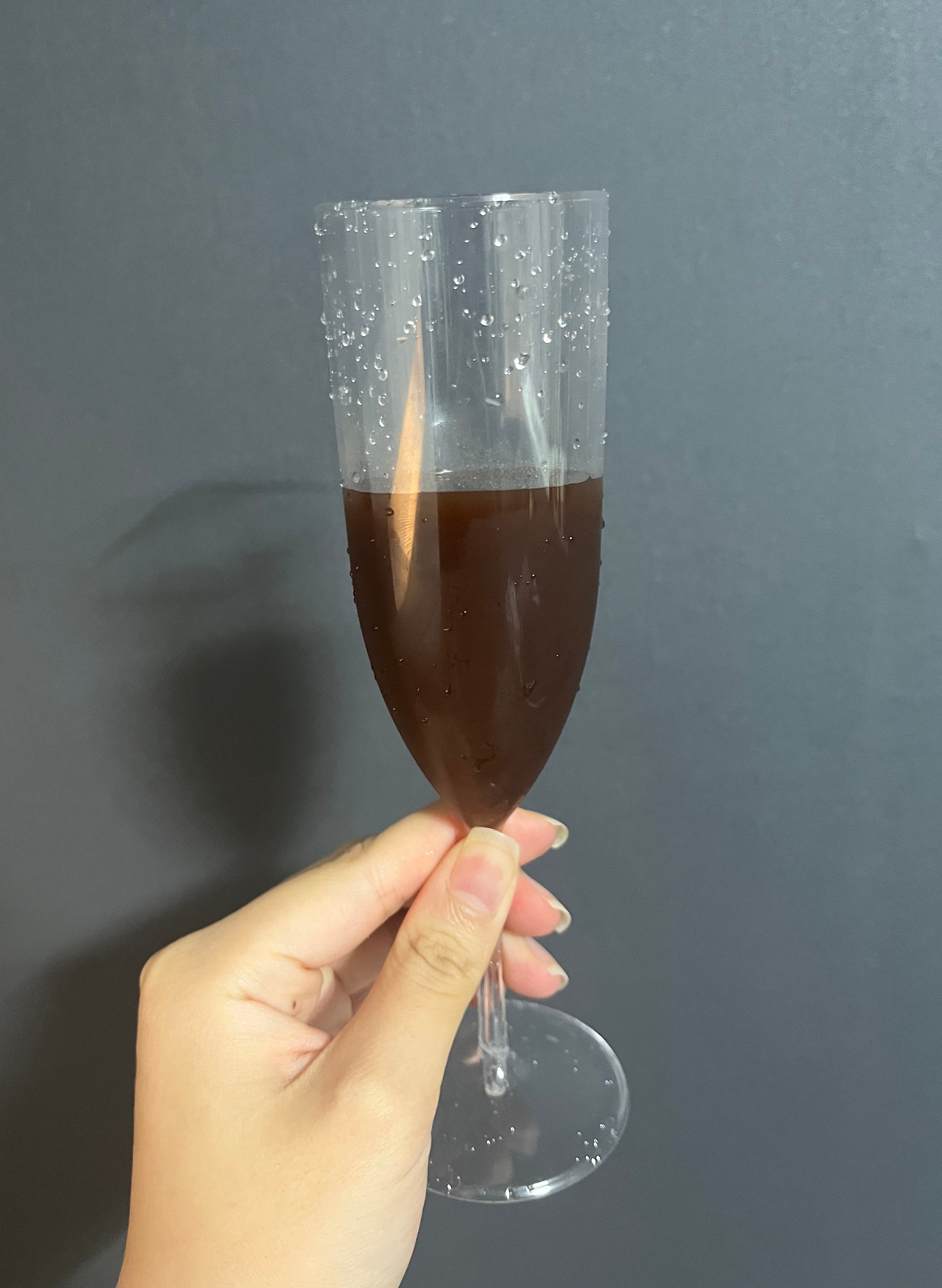 잔에 따른 술의 모습은 적당히 진해보이는 갈색을 띠고 있다. 마음 같아선 술의 안쪽이 보이지 않을 정도의 검은색을 띠기를 바랐지만, 그래도 나름 짙어 보이는 것이 겉만 봐서는 꽤나 괜찮은 달콤함을 가져다줄 듯하다.