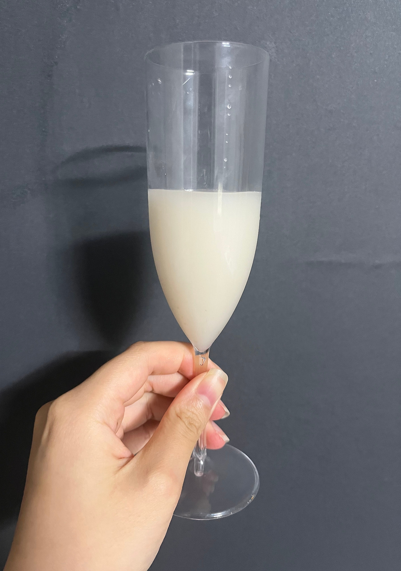 잔에 따른 막걸리는 우유보다 약간 옅은 색을 띠고 있다. 색으로 보았을 때에는 맛이 그렇게 진해 보이지 않으며, 깔끔하게 부드러운 질감을 가지고 있는 듯하다. 늘 드는 생각이지만, 막걸리를 따랐을 때 보이는 순백의 색은 아름답지 않은 적이 없는 듯하다.