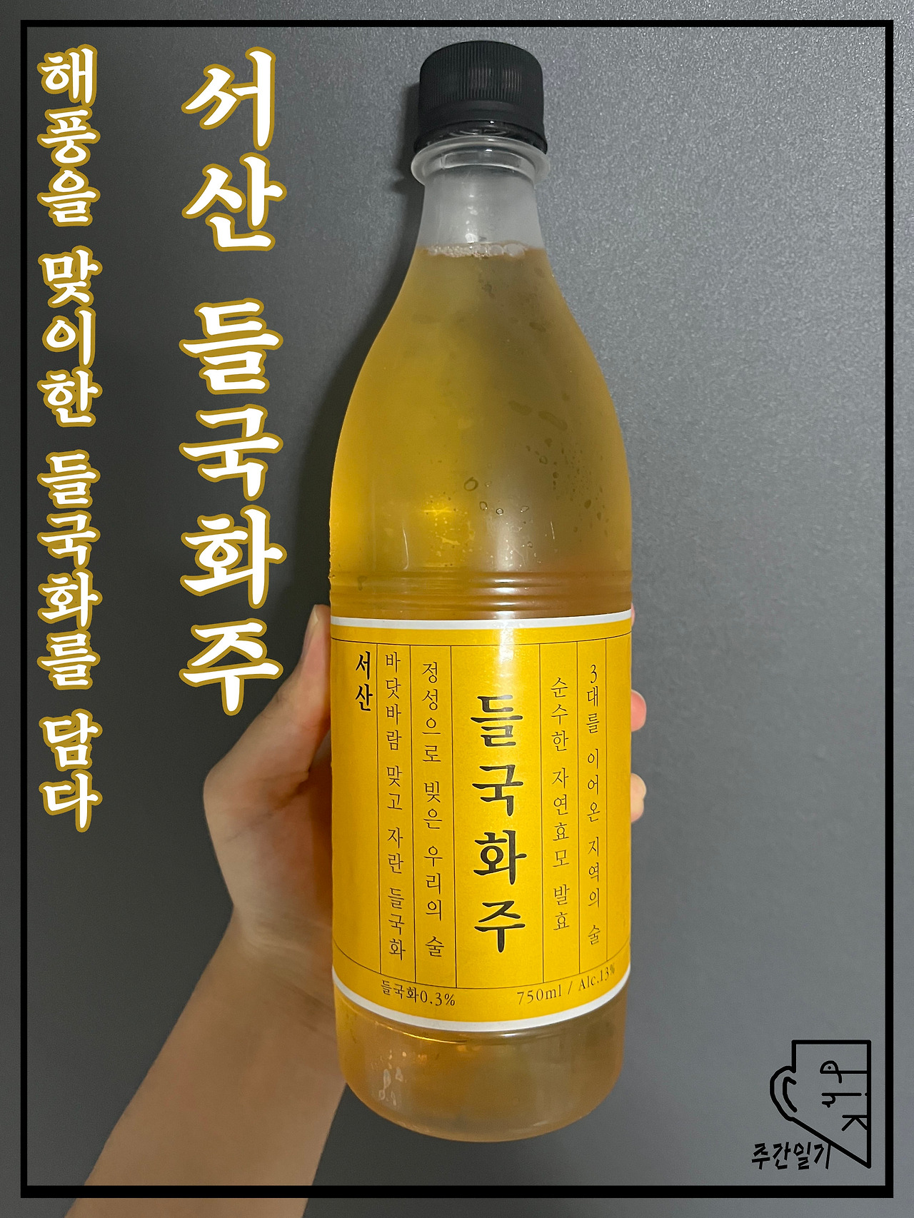 그래서 오늘은 집에서라도 대리만족을 하기 위해 들국화가 담긴 술 한 병을 가지고 왔다. '서산 들국화주'. 우연히 '해미읍성'을 놀러 갔다가 발견한 친구이다. 간단히 요깃거리를 사기 위해 들린 마트에서 그리 비싸지 않은 가격을 선보이며 전시되어 있었고, 그렇게 내 눈에 띄자마자 장바구니에 담기게 되었다.