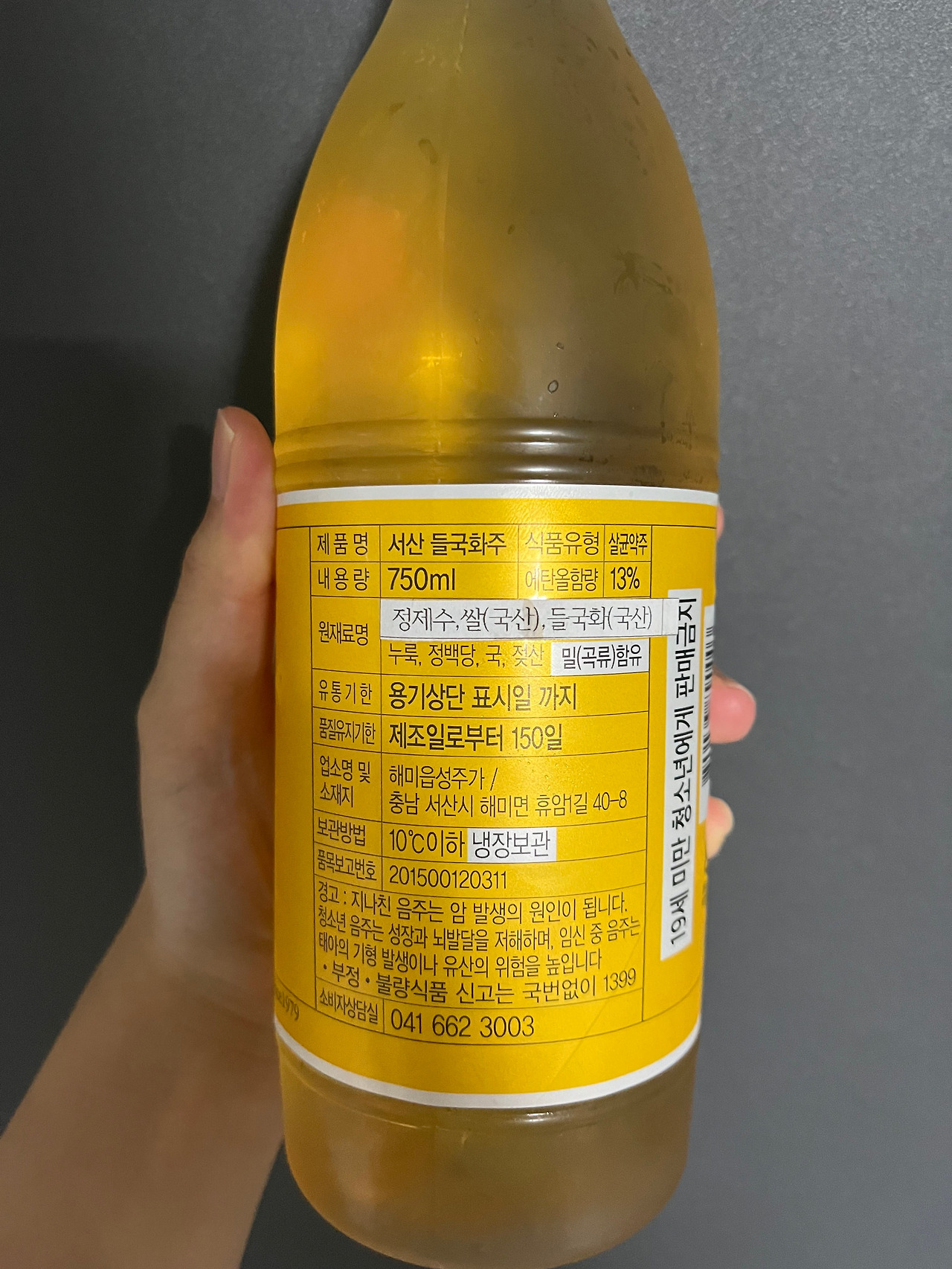 술의 용량은 750ml, 도수는 13도. 가격은 하나로마트 기준 3000원이다. 최근 온라인을 통하여 구매한 전통주의 가격이 대부분 10000원을 웃돌았기 때문인지 굉장히 저렴해 보이는 가격이다. 용량이 750ml임에도 불구하고 가격이 3000원 밖에 안 한다니, 한 병 밖에 구매하지 않은 것이 맛을 보고 나서 후회할까 걱정이다.