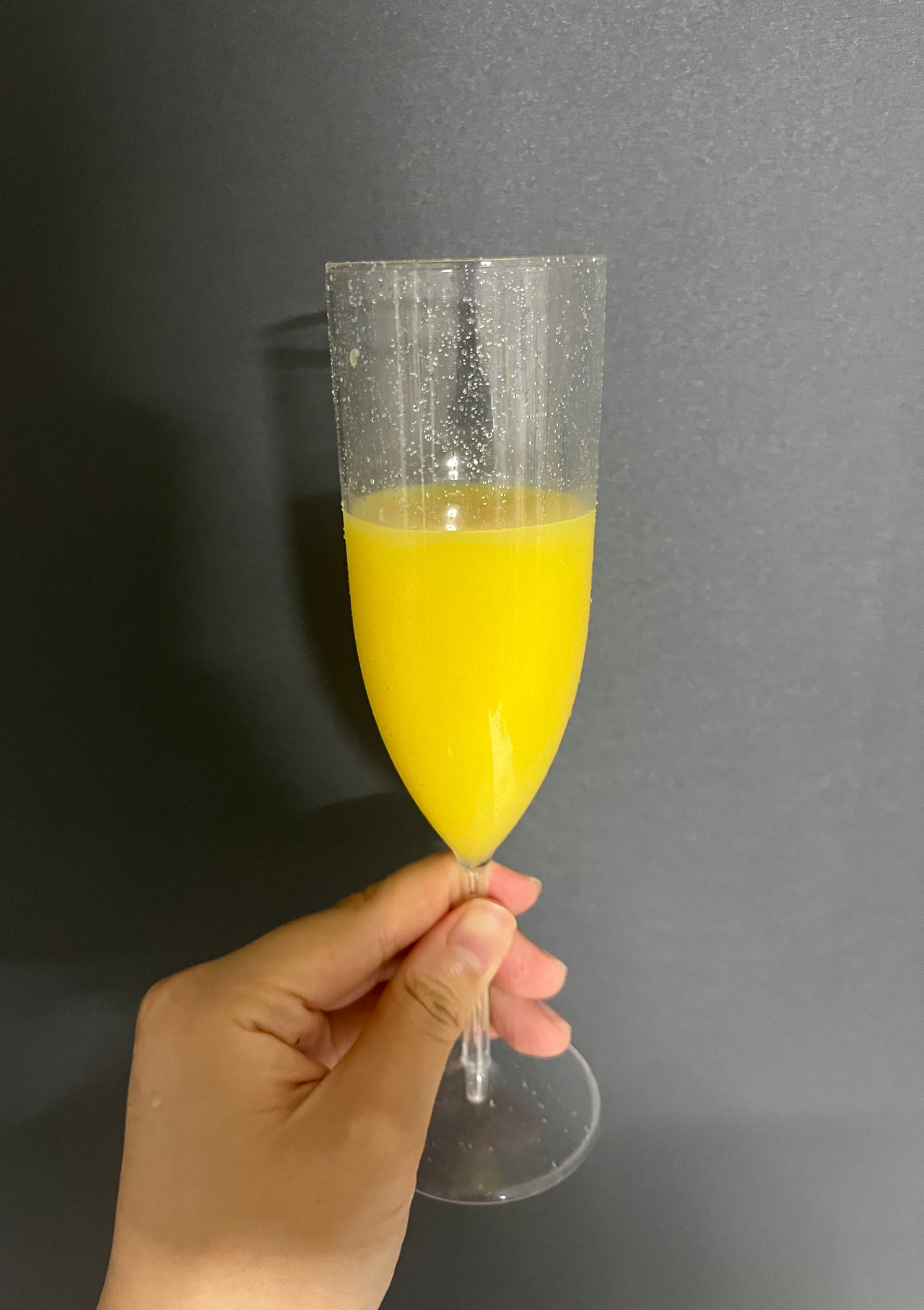 술을 잔에 따른 모습 역시 병 밖에서 보는 것과 큰 차이가 없다. 너무나도 샛노란 탓에 이것이 오렌지 주스인지 강냉이 막걸리인지 잘 구분이 가지 않을 정도이다. 만약 잔에 따른 것이 무엇인지 가르쳐주지 않고 이렇게 사진만 보여주었을 때 정답을 맞힐 수 있을까. 아마 열에 열은 틀린 것이라고 생각한다.