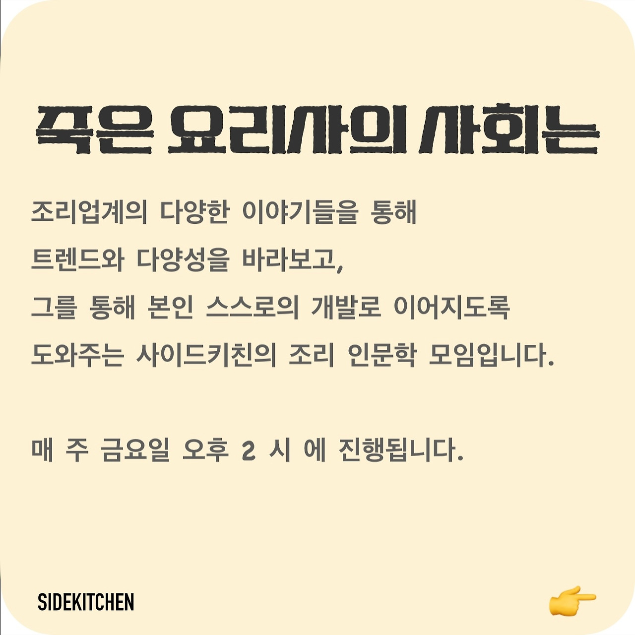 이를 통해 비전공자도 삶을 바라보고 재미나게 요리할 수 있는 시간을 만들어보고자 한다.