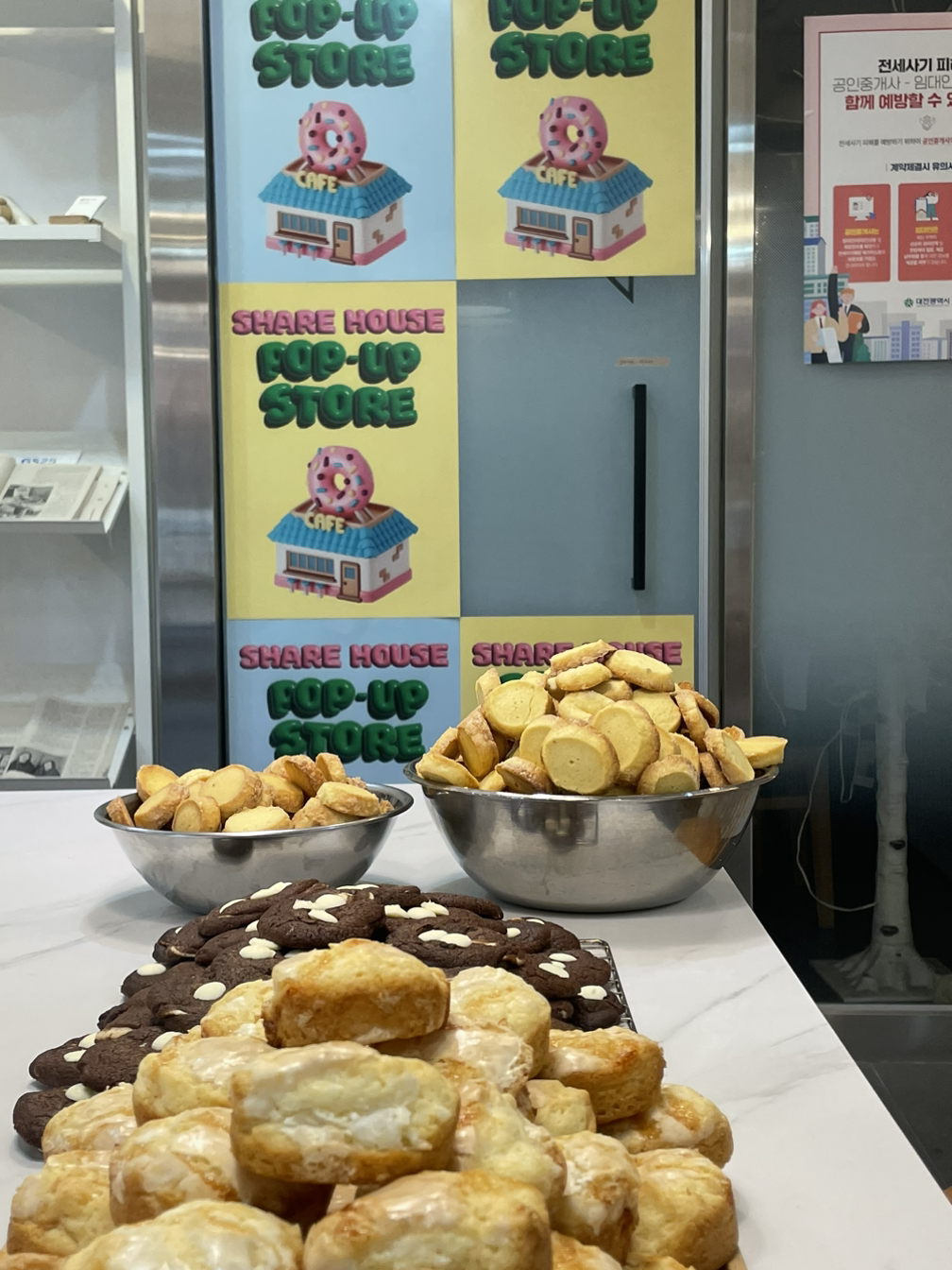 스콘과 아메리카 쿠키와 사브레쿠키와 휘낭시에를 준비한다.