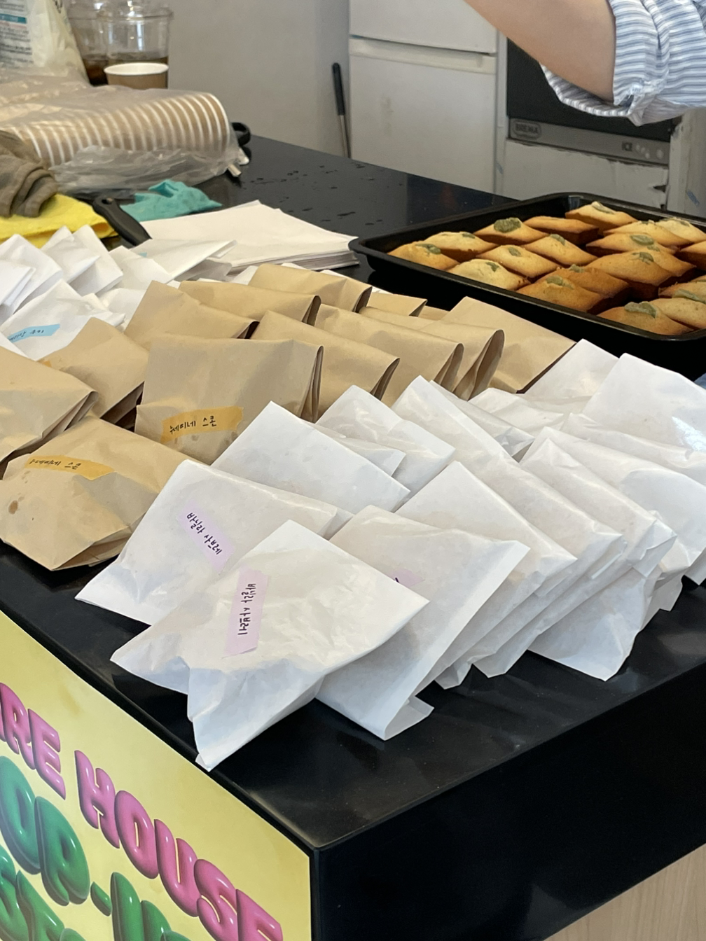 세트메뉴 30개씩과 모든 품목을 20개씩 (휘낭시에 2종 , 스콘 , 쿠키 2종) 완 판.