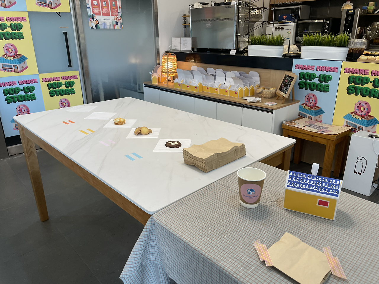 1개씩 배치하고, 5명의 친구들이 각 자 픽 한, 과자를 전시하고, 포장한다.