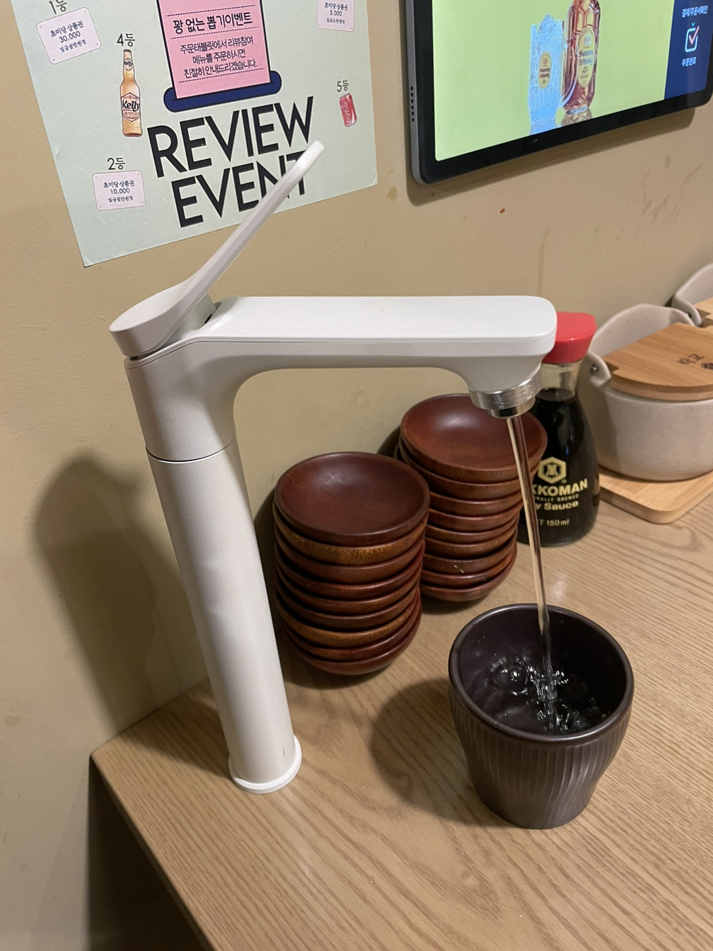 대부분의 식기류가 움직이지 않아도 될 정도로 세팅되어 있다.