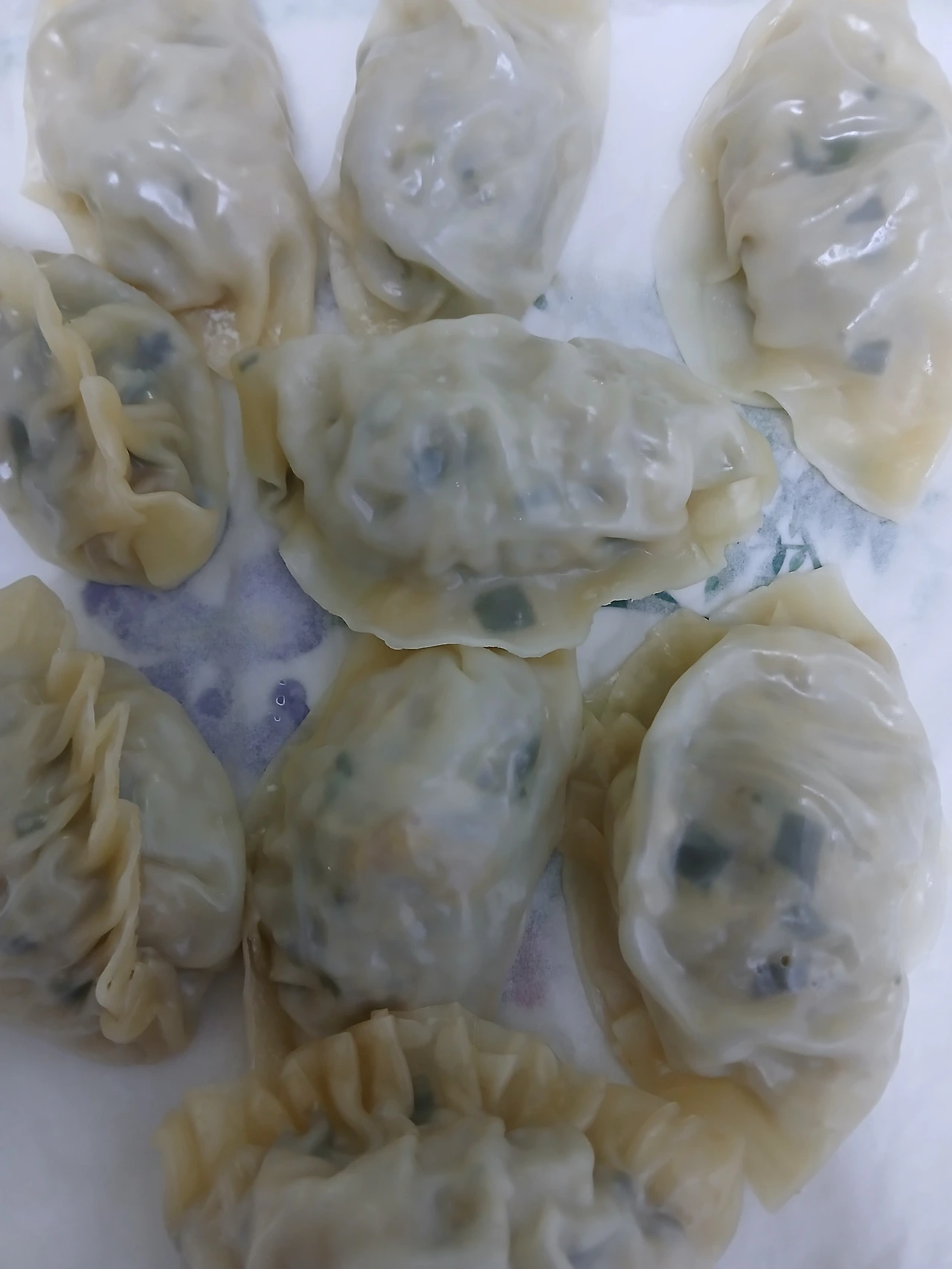 어머나! 내 정신 좀 봐! 만두피에 물도 안 묻히고 만두 빚었네.
