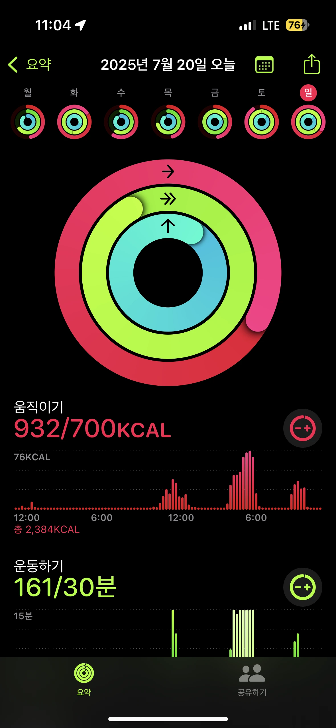 ..이건 오늘 애플워치 상태!