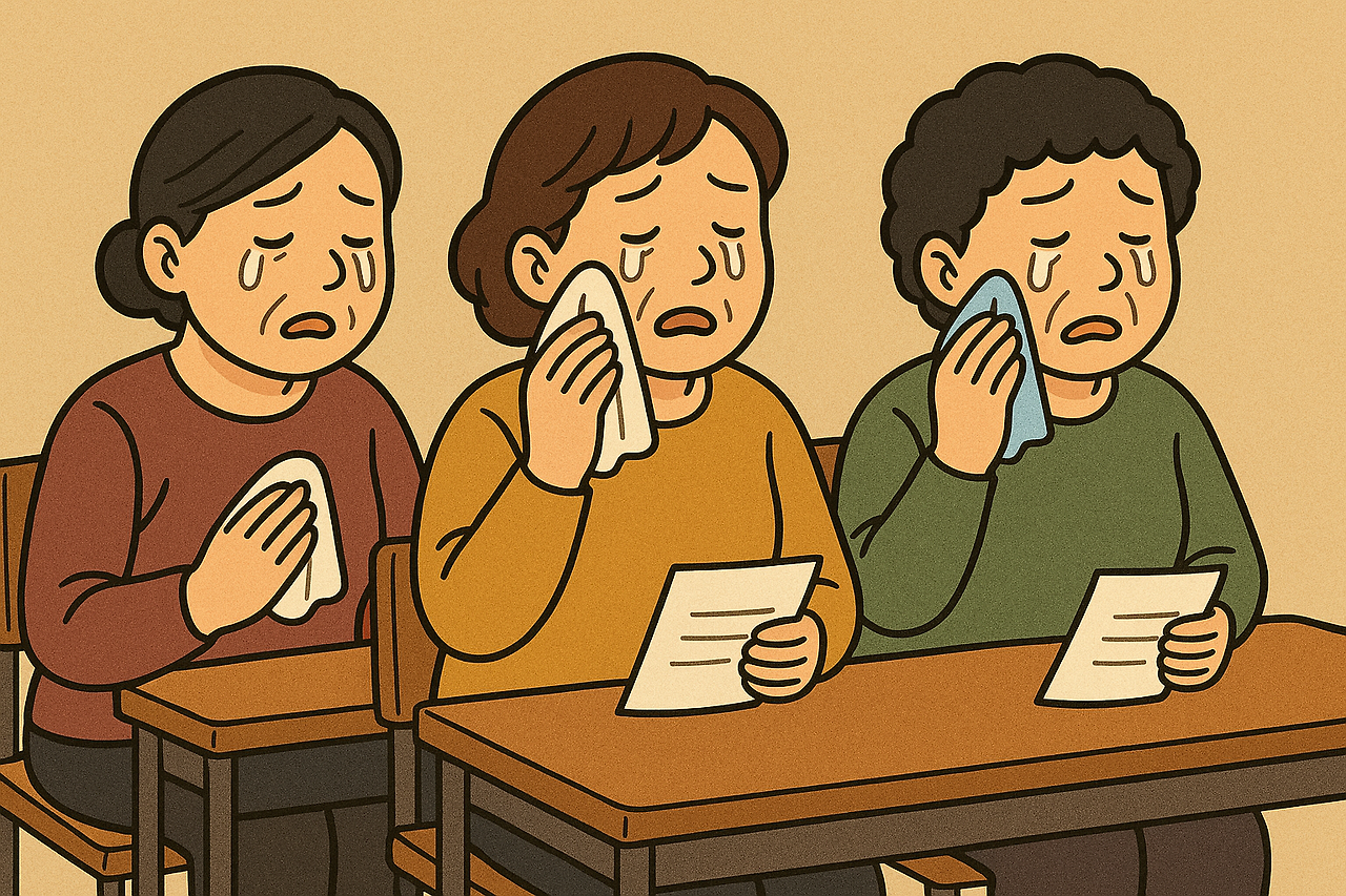 그 순간 교실은 완전히 조용해졌다. 그러다 누군가 손수건을 꺼냈고, 연쇄반응처럼 모두가 눈물을 훔쳤다.