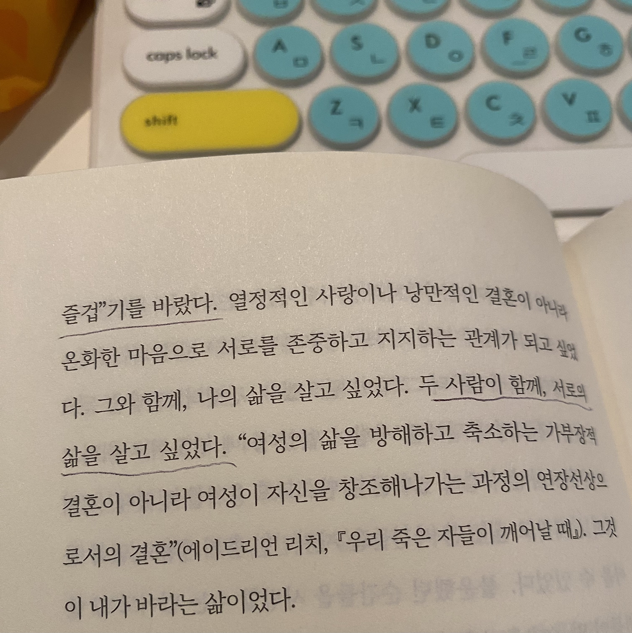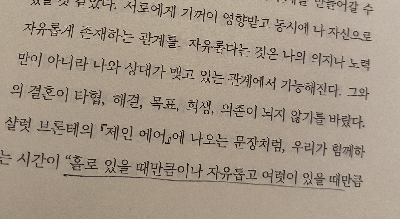 결혼은 둘이 만나 하나가 되는 것이 아니라, 상대를 통해 내가 몰랐던 세계를 알고 나를 더 넓히는 일이었다. ‘그럴 수 있지’라는 말을 입에 자주 달고 사는 남편 덕분에 타인을 이해하는 폭을 넓힌 것이 아주 좋은 예인 듯싶다. 배우자 역시 나로 인해 본인의 세계를 확장하는데 조금은 보탬이 되고 있길 바란다.