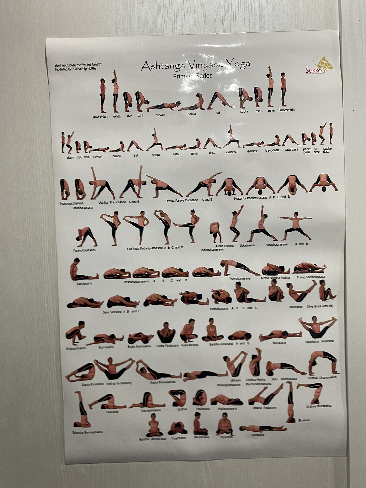 아쉬탕가라는 요가 종류가 있다. 고전 요가 축에 속하는 장르인데, 템포도 빠르고 강한 근력을 요한다. 특이한 건, 어떤 나라에서 수련을 하던 정해진 순서와 방법으로 수련한다. 원래는 스승이 허락하기 전까지 자기 수준에 맞는 단계를 지켜야 한다고 하더라. 풀 시퀀스를 다하면 거의 2시간은 되는 것 같더라.. 아쉬탕가를 수련하다 보면 힘든 들지만, 몸을 계속 움직이다 보니 잡념이 사라지고 속근육이 단단해지는 기분이 든다.