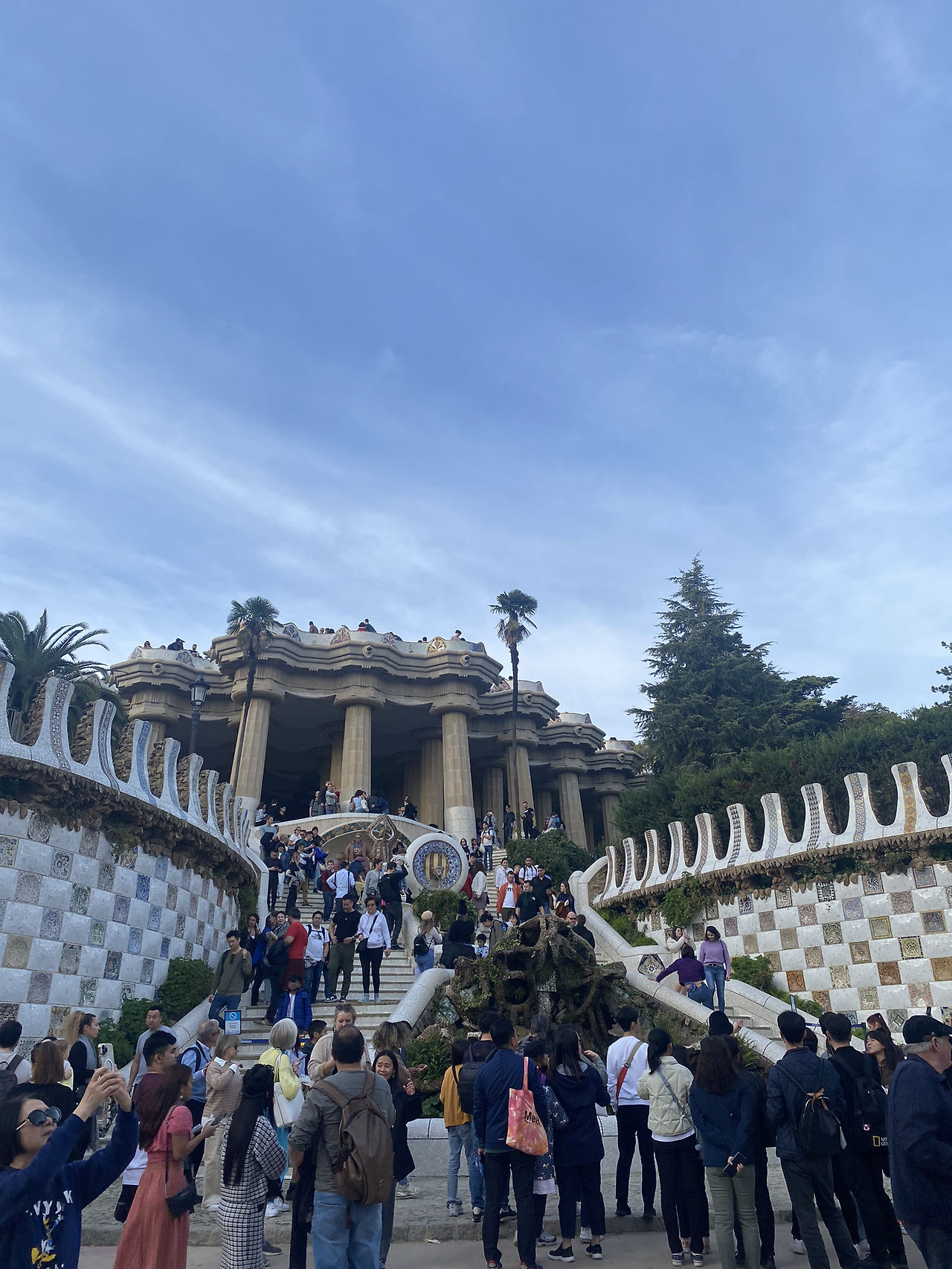 점심 후 낮잠을 한숨 때리고 (무슨 매일 시에스타인줄..) 예약해뒀던 구엘공원으로 향했다. 원래는 우리나라 평창동 느낌으로다 부촌으로 분양하려 했지만 가우디가 너무 앞서가서 실패한 것 같다. 그걸 대중들이 입장가능한 공원으로 탈바꿈한 것이 지금의 구엘공원이다. 백그라운드를 알고 보니 더 재밌다. 근데 솔직히 기대보단 별로였다... 사람이 너무 많아.....