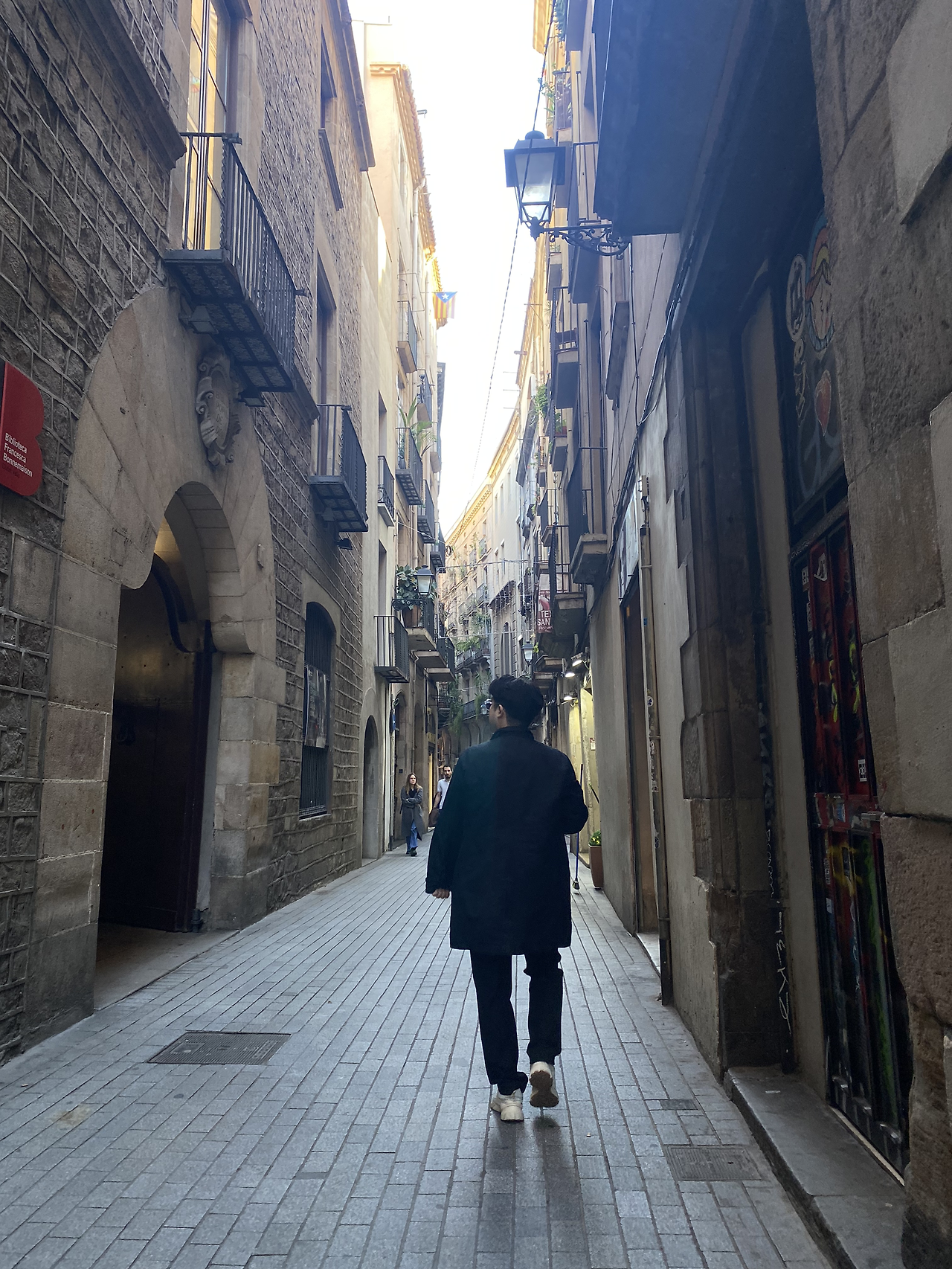 숙소로 돌아와 나갈 채비를 하고 카탈루냐 역사박물관으로 향했다. 라발지구 쪽을 자연스럽게 지나가게 되는데, 이곳 역시 밤과 낮의 풍경이 온전히 달랐다. 미드나잇인파리에 나올 것 같은 몽환적 분위기의 유럽 골목이 밤 풍경이었다면, 아침은 이 동네 사람들의 일상이 자연스럽게 시작되는 평범한 풍경이 비치는 곳이었다. 아마 그 골목 사이에서 사진 찍는 우리를 보며 동네사람들이 신기해할지도. 우리로 치면 가양동에서 관광객들이 사진 찍는 느낌이겠지..?
