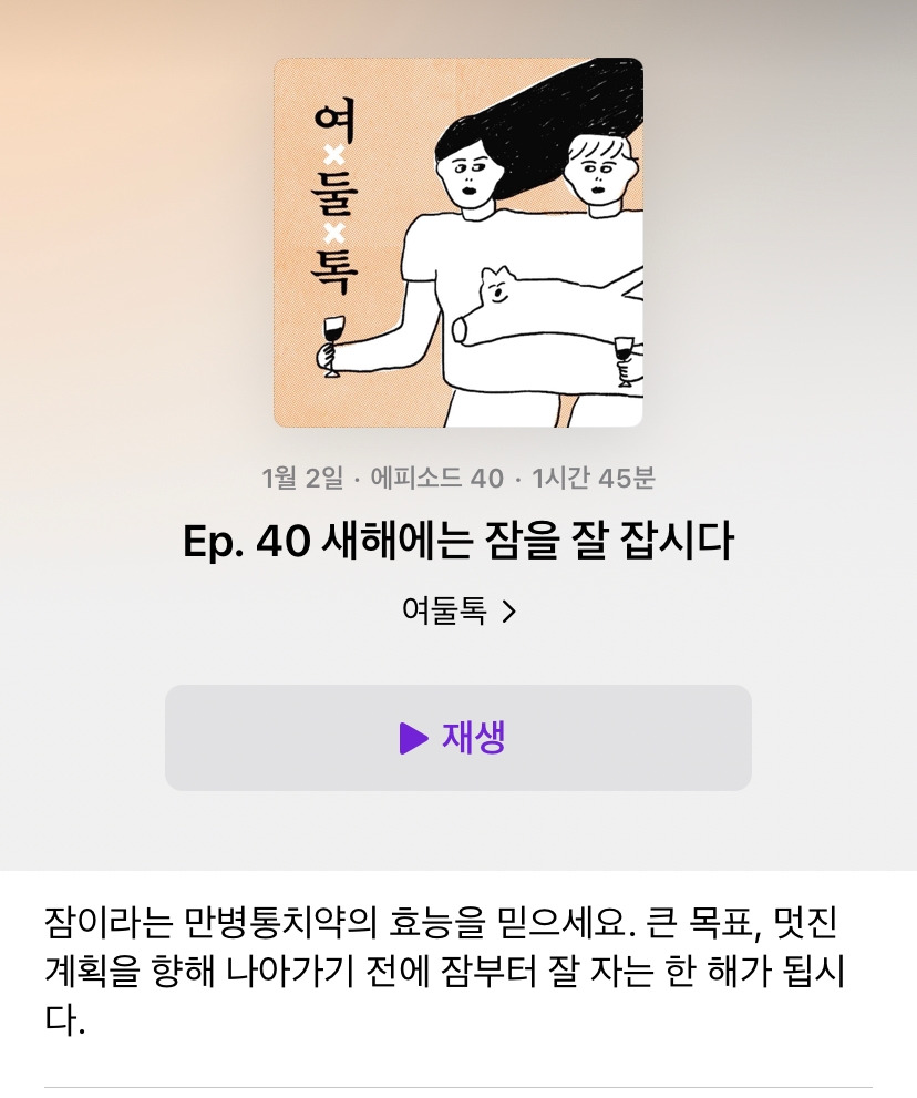 최근 한의원에 갔을 때 첫 질문은 ‘잠을 잘 주무세요? 그러면서 마지막 진료실을 나가기 전 조언도 ‘규칙적인 시간에 잠을 자도록 해보세요’였다. 잠에서 시작해 잠에 대한 이야기로 끝이 났다. 요새 즐겨 듣는 팟캐스트 여둘톡에서도 ‘잠’을 주제로 한 에피소드가 있었다. 두 작가는 잠에 대한 예찬론을 펼친다. 잠을 잘 자는 사람들은 덜 예민하고, 상대와 대화할 때 날이 덜 서있고, 너그러워지고, 일이 덜 힘들고, 어려운 상황을 견뎌내는 정신력을 보유하고 있고, 공부도 더 잘하게 된다 등등. 듣고 보면 꽤나 맞는 말이다.