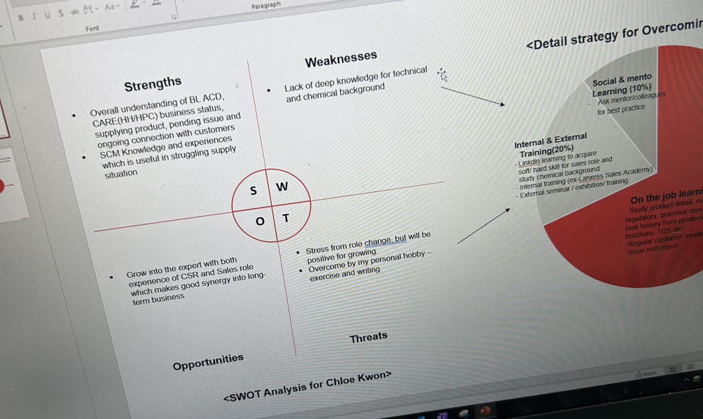 우선 일적으로는, 새로운 영업 직무로의 커리어를 시작했다. SCM 관련 분야에서 거의 7년 이상 일하면서 함께 일하는 동료, 매니저로부터 배우는 것도 많았지만, 마음 한편엔 늘 새로운 업무에 도전하고 싶다는 갈망이 컸다. 평생 직장인으로 살 것은 아니기에, 이왕 회사에 다니면서 다양한 시도를 해보고 싶었다. “편하고 익숙한 것들을 넘어 조금씩이라도 새로운 도전을 하거나 무리하지 않는다면 현상유지는 될지 몰라도 실력이 늘지 않는다.”라는 임경선 작가님의 말처럼, 익숙함에 젖고 싶지 않은 의지도 컸다.
