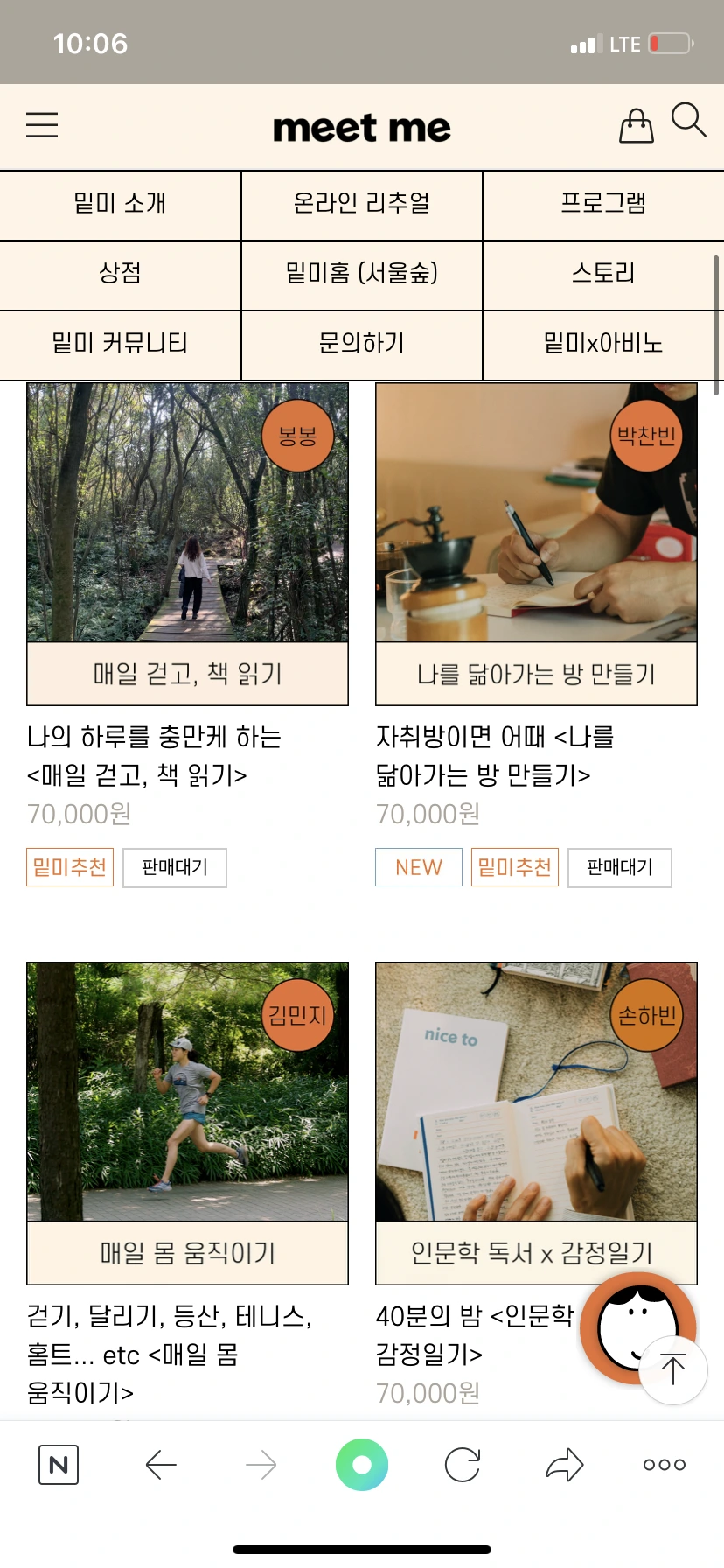 브런치에는 인스타나 블로그보다 좀 더 내 생각과 시선이 정돈된 글을 올리고 싶은 욕심이 있다. 그래서 부족한 실력이지만 글감을 고민하고, 글을 어떻게 풀어갈지 주제도 구상도 해보고, 어울리는 이미지도 좀 더 신중하게 찾아왔다. 그런데 요즘 들어 글감이 확 떠오르지도 않고, 글이 억지로 써지는 기분이 들었다. 변화가 필요한 시점이라 생각해 글쓰기 커뮤니티나 강연을 찾아보던 중 평소 눈팅만 해오던 '밑미(meet me)'가 떠올랐다.