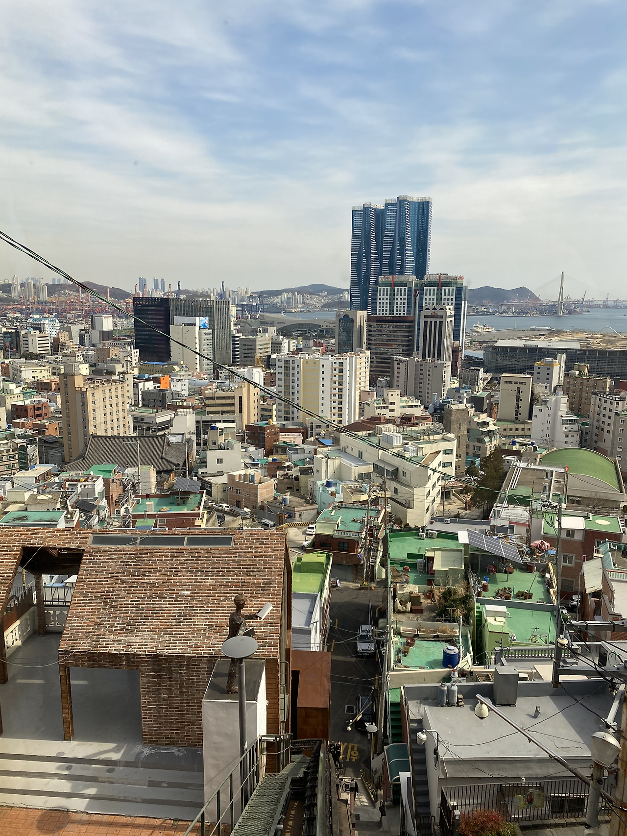 거의 등산 수준의 언덕길이었지만 하늘과 가까워진 전망대에서 바라본 풍경은 예술이었다. 걸어왔던 이바구길, 부산항의 풍경, 아까 봤던 다이아몬드 타워가 한눈에 들어왔다. 왜 이렇게 언덕에 집을 많이 지었나 했는데, 알고 보니 초량동은 한국전쟁 때 피난민 마을에서 시작되었고 그래서 이렇게 급경사임에도 불구하고 많은 주택들이 모여있던 것이었다. 어떻게든 터전은 마련해야 했으니까...이곳을 걸으며 다시 한 번 '걸어야 비로소 보이는 것들이 있다'는걸 깨닫는다.