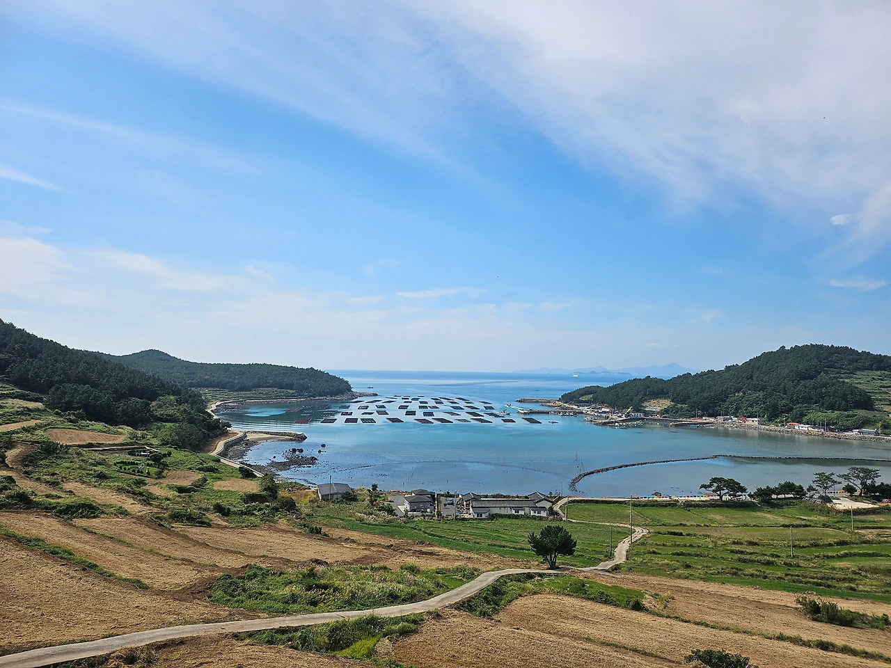 가파른 길을 올라 범바위 전망대에 도착했을 때는 섬이 한눈에 들어왔다. 바다와 논밭이 어우러진 풍경이 마치 한 폭의 수채화 같았다. 나와 장모님은 나란히 앉아 조용히 바람을 맞았다. 장모님이 조용히 말씀하셨다. "여기 오길 잘했네. 가족끼리 이런 시간이 참 소중하지." 나는 고개를 끄덕이며 "맞아요. 이런 순간이 있어서 사는 맛이 나죠." 하고 대답했다.