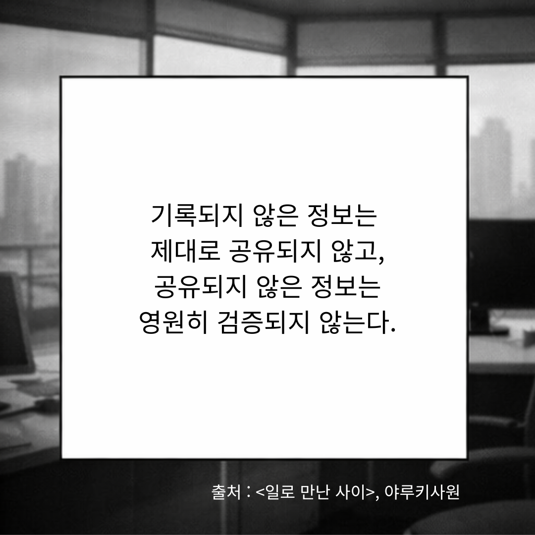 그 뒤로 독고진 과장은 한참 동안 자리를 비웠다. 2시간 정도 지난 후, 개발팀으로부터 메일이 도착했다. 첨부파일을 열어보니 지난번에 보내준 것과 똑같다. 수정할 내용이 없다는 걸까, 아니면 수정한 내용을 실수로 반영하지 않은 걸까. 도통 알 길이 없다. 전화는 빠르고 편하지만 기록이 남지 않으니까. 독고진 과장과 개발팀 담당자가 무슨 이야기를 어떻게 나누었는지는 두 사람을 제외하고는 그 누구도 알 수가 없다.