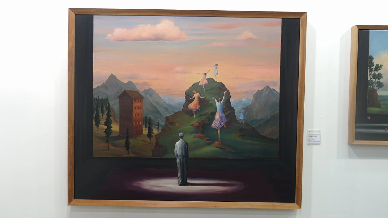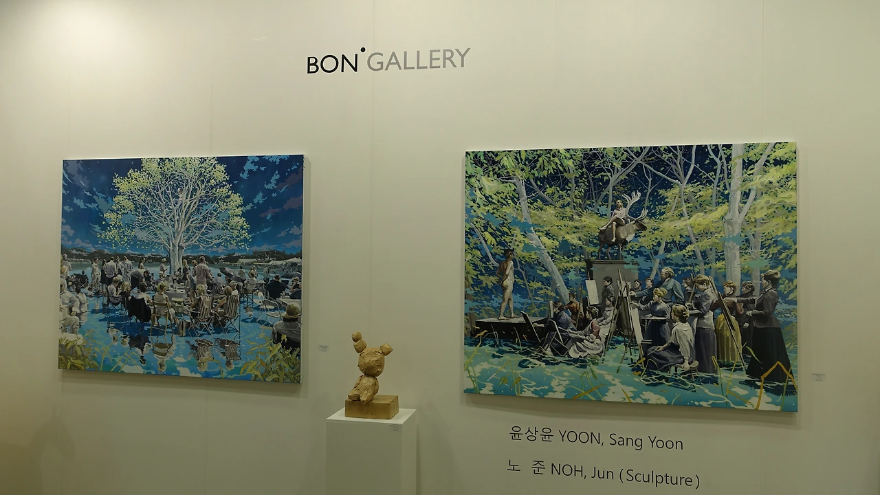 본 화랑에서는 윤상윤 작가의 유화가 전시됐다. 사람들이 모여있는 장소가 땅이 아닌 물 위라는 점이 특징이며 하늘과 대치되는 바닥이 작품 전체에 안정감을 준다. 그 중간은 나무들이 중심을 잡고 있어 보는 이들로 하여금 물 위에 사람들이 있어도 편안함을 가져다 준다.