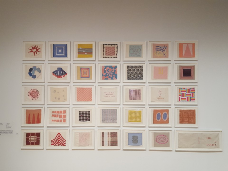 윤석남 작가의 작품이 빛이라는 매개를 통해 여성의 치유력을 표현했다면 루이스 부르주아는 상대적으로 의지적인 모습을 보였다. 루이스 부르주아의 ‘망각에 부치는 노래’는 작가의 자전적 이야기를 소재로 다루고 있다. 결혼 후부터 노년이 되기까지 자신이 입은 옷과 사용하던 천을 바느질 해 하나의 그림책으로 완성한 작품이다.