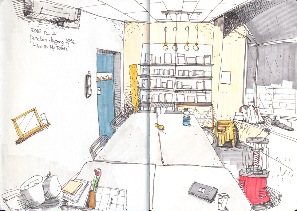 여행 드로잉 수업 시작 전, '마을에숨어'에서 잠깐의 생각.