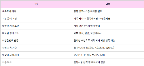 아래에서 체육교사가 되는 과정을 단계별로 정리해 보겠습니다.