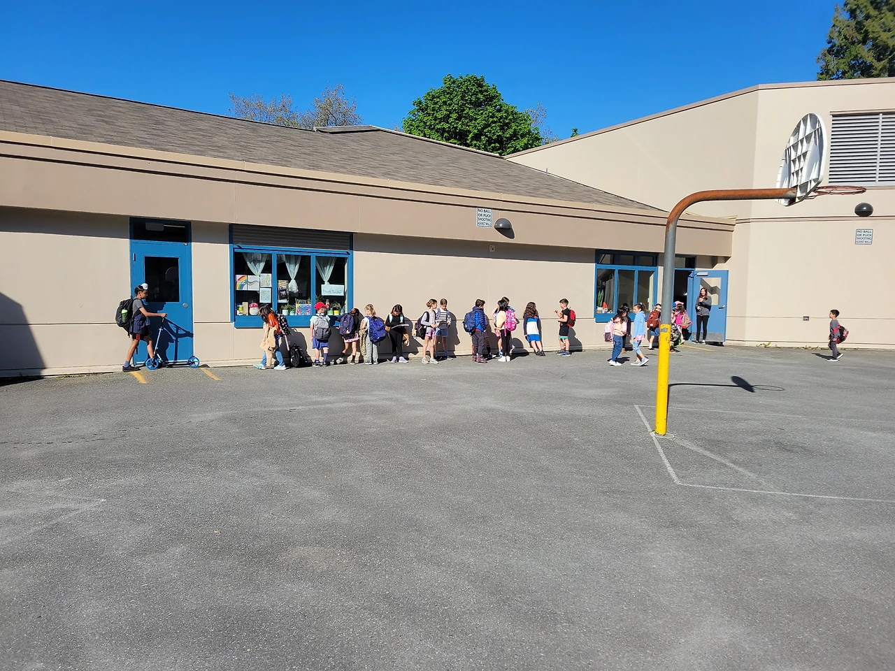 킨더아이들이나 저학년들은 부모님들이 교실 앞까지 데려다주고 데리러 오는데, 고학년들은 혼자 오거나 부모님들이 학교 앞에서 내려주기만 하면 각자 교실로 걸어간다.