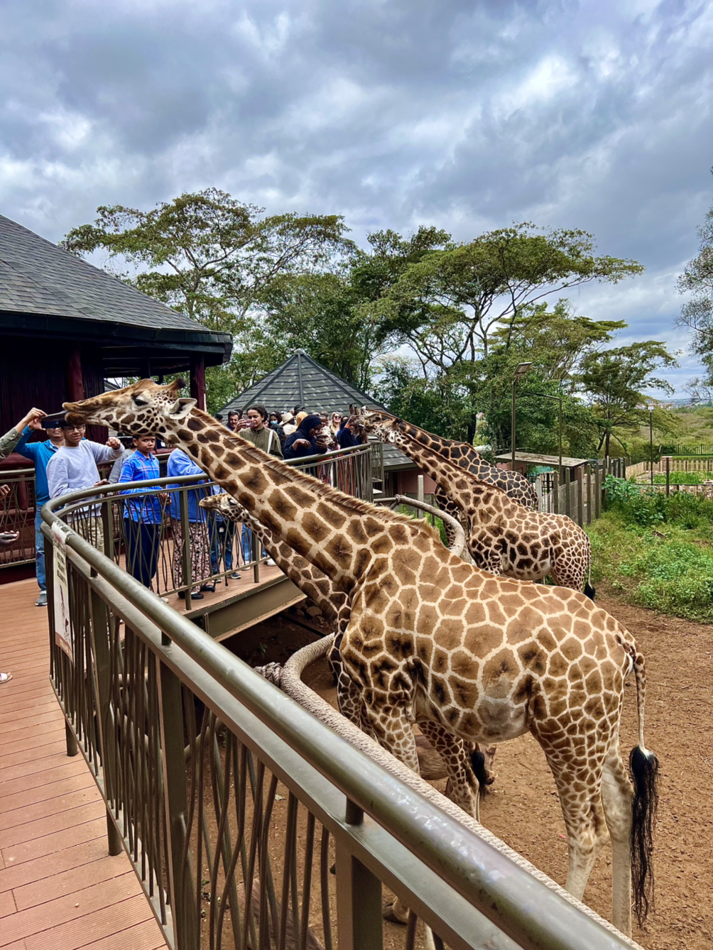 드디어 기린과의 실물 영접! 실제로 정말 가까이에서 마주한 기린들은 아기부터 어른까지 거대하다라는 표현이 딱 들어맞았다. 흥분한 관광객들은 기린들을 향해 손바닥을 쭉 내밀고 먹이를 다 받아먹을때까지 동동걸음 친다. 센터는 광활한 대지를 끼고 있지만 관광객에게 허용된 곳은 먹이를 줄 수 있게 만들어둔 작은 쉼터와 다리 뿐이다. 기린들은 아주 여유로웠고, 자세히보니 저마다 무늬의 모양도 색깔도 다 다르다. "저 친구는 가장 나이가 많고 아주 느긋한 성격을 가졌습니다. 하지만 이 친구는 조심하세요. 대단한 박치기 선수니까요." 성격조차 다양한 기린들을 보고 있으니 내가 정말 아프리카에 있구나, 다시금 실감이 난다.
