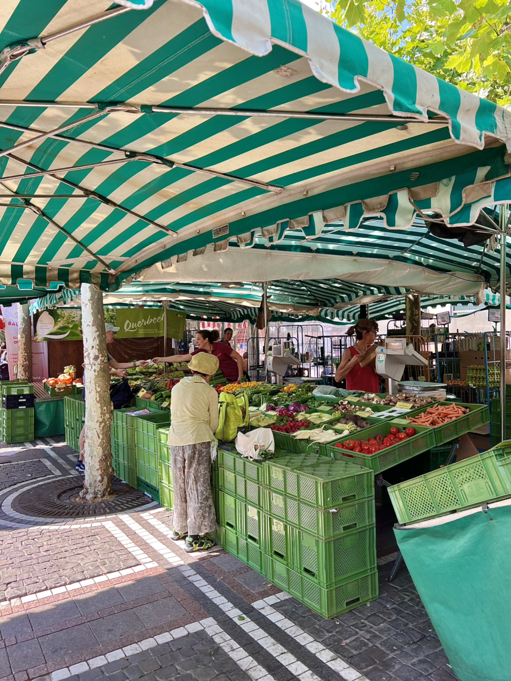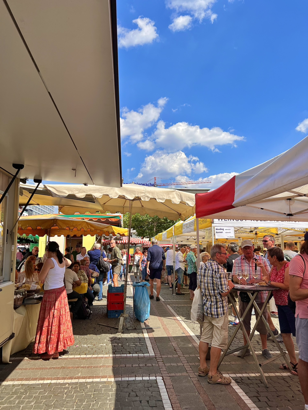 기차역에서 나와 3분 정도 걸으니 우뚝 솟은 쇼핑몰과 상점들, 그리고 그 사이에 하늘하늘 춤을 추는 넓직한 이파리의 푸른 나무들이 한눈에 들어온다. 더구나 주말이라 광장에는 마켓이 형성되어있는데 왠지 우리나라의 오일장같은 느낌이다. 식료품부터 기념품, 의류, 생맥주 뿐 아니라 다양한 먹거리들이 있지만, 그 중에서도 숯불에 구워주는 소시지빵에 구미가 당긴다. 고민없이 한손에는 갓 구운 소시지빵, 다른 손에는 와인가게에서 산 백포도주스를 들고 파라솔 밑의 벤치에 현지인들에 섞여 앉는다. 입안에 와앙 들어오는 건 무엇보다도 여행의 맛. 행복이 솔솔 퍼진다.