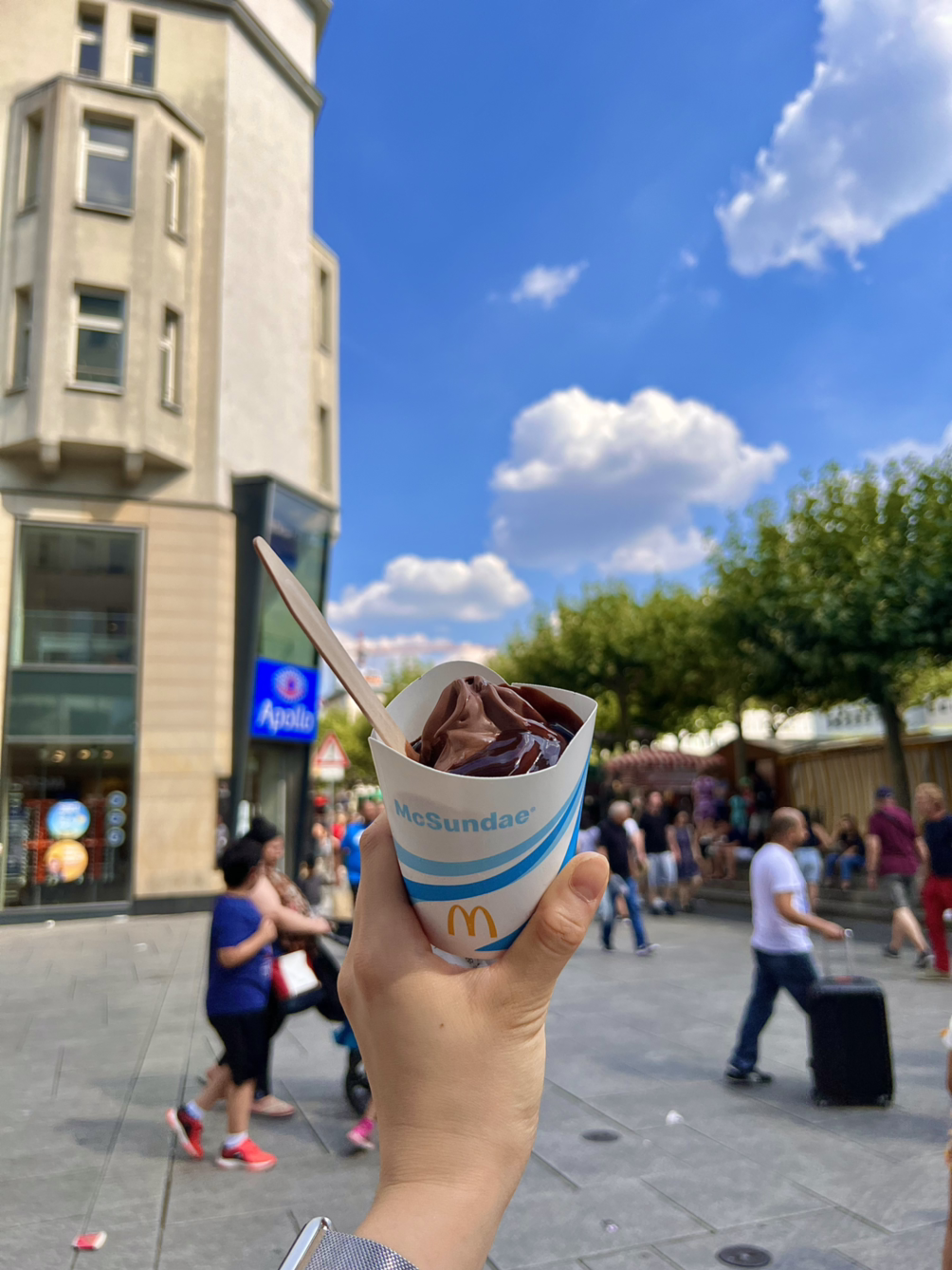 날은 후덥하지만 끝없이 불어오는 바람이 상쾌하다. 이대로는 아쉬워 꾸덕한 초코 아이스크림을 하나 사 쇼핑몰로 향한다. 프랑크푸르트에는 정말 없는 게 없다. 모든 브랜드가 다 모여있다. 성큼성큼 앞장 서 걷고있는 선배는 이번엔 여기, 다음엔 저기 하며 선구자가 되어 항로를 개척한다. 나 또한 우려가 현실이 되어 할머니를 위한 그릇 세트부터 부모님께 드릴 비타민 크림, 친구들에게 줄 영양제까지 야무지게 쟁인다.