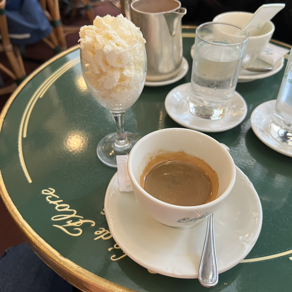 감각을 깨워 한걸음씩 내딛다보니 길건너 테라스가 있는 2층짜리 고풍스러운 커피숍이 하나 보인다. 적지 않은 사람들이 커피에 크림과 크로아상을 곁들이고 있다. 그래, 저기에서 잠시 쉬었다 가자. 바깥이 보이는 자리로 안내받은 뒤, 향긋한 에스프레소에 크림을 얹어 마시는 스페셜 메뉴를 주문한다. 당충전이 시급하던 와중에 당연히 달콤할줄 알았던 크림은 생각보다 담백했고, 더도 덜도 아니게 커피의 씁쓸함만 잡아주었다. 살짝의 아쉬움. 그럼에도 워낙 커피를 사랑해서인지 나쁘지 않다. 입속을 가득 메운 원두의 향이 힘을 내라며 활기찬 응원을 선사한다.