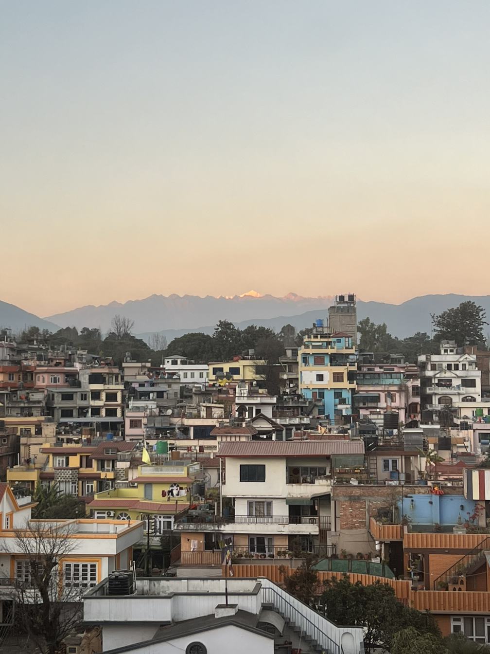 꽤나 푹 잤다 싶어 눈을 떠보니 이미 해는 가까이에서 온세상을 비추고 있다. 문 밖으로 나서며 기지개를 쭈욱 켜는데 아직 어젯밤의 그 공기다. 어라, 뭐지? 사방을 살펴보니 여전히 뿌옇다. 내 눈이 잘못된건가. 자세히 살펴보니 좁은 간격으로 향이 피워져있다. 내가 들이마셨던 공기는 다름아닌 향을 피워나온 연기였던 것이다. 석가모니 부처님의 탄생지이자 3억이 넘는 신들을 섬기는 나라답게 곳곳에 작은 상징들과 벽화들이 채워져있다. 멀리서 보이는 에베레스트산과 당장 눈을 들면 하늘을 빽빽하게 덮은 전선줄. 게다가 연기로 뽀얗게 덮힌 마을 곳곳. 카트만두는 이렇게 자신만의 성질을 오롯이 가지고 있다.