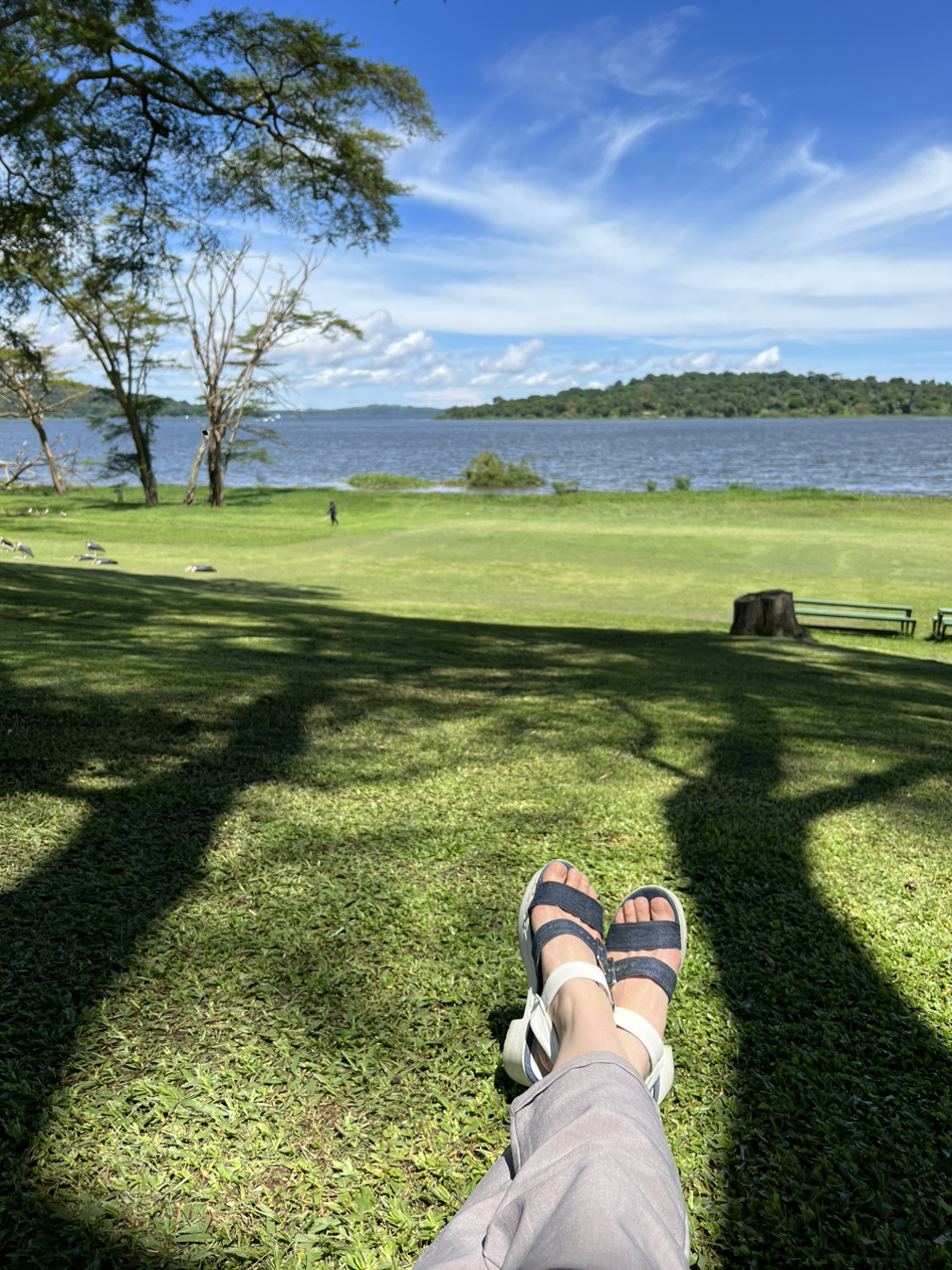 빅토리아 호수 파도타기는 이쯤하고 리조트 주변을 산책하기로 한다. 규모가 워낙 크고 다양한 종류의 새들이 노래해서 그런지 살랑이는 바람에 걷기만 해도 힐링이다. 조그마한 언덕이 있어 올라가 커다란 나무 그늘 잔디밭에 잠깐 앉는다. 혼자가 된 이 시간이 나쁘지 않다. 호수는 어딘가로 흘러가고 새들은 날아올랐다가 땅으로 내려오기도 한다. 멀리서는 몰랐는데 잔디 가까이서 보니 열심히 움직이는 개미들이 많다. 어디서나 그 모습이 같다. 왠지 모를 위로를 준다.