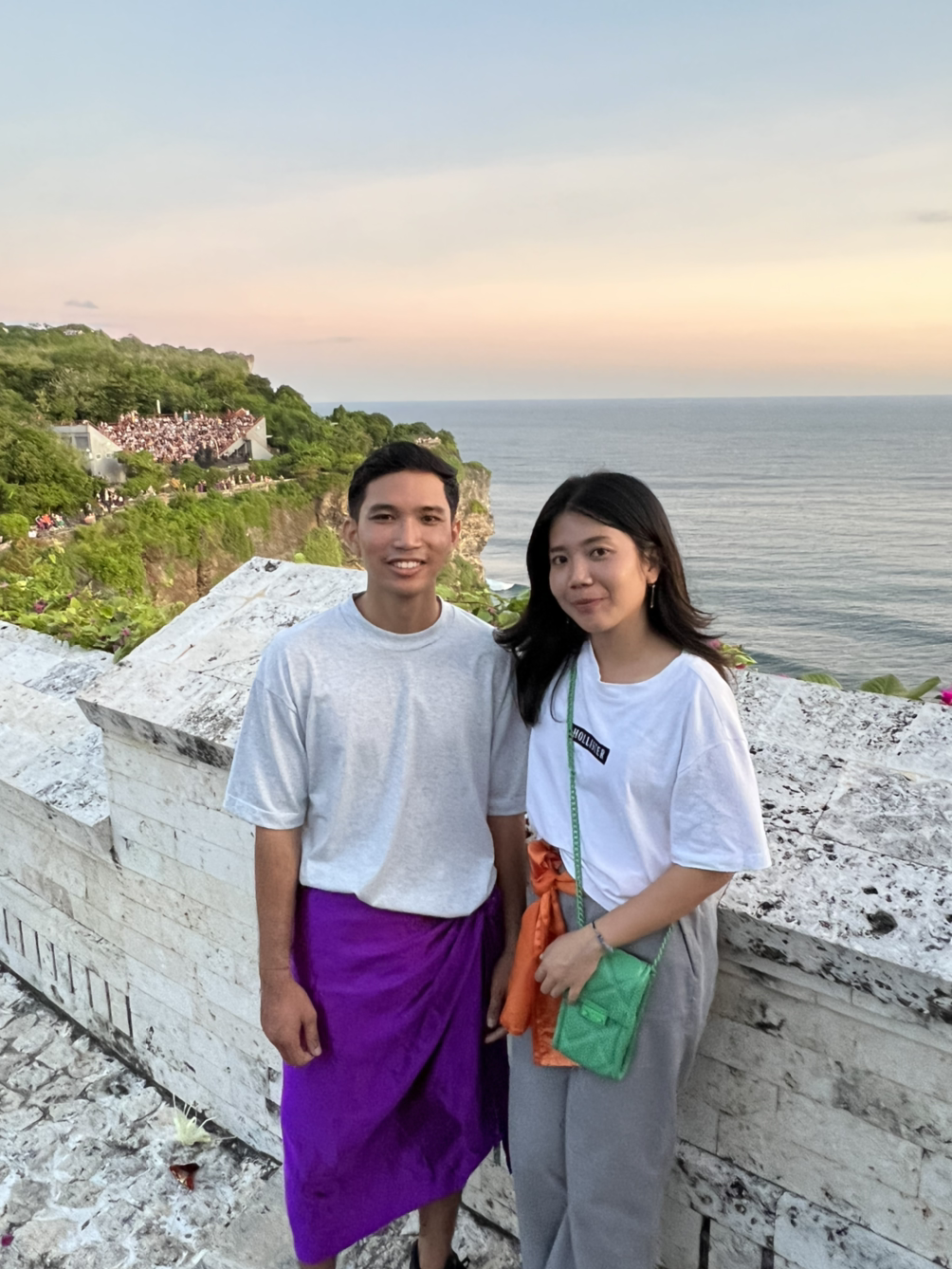 공원 구석구석을 한바퀴 다 돌아본 후 커다란 밀짚모자를 벗으니 머리가 시원하게 트였다. 꼬마는 기다렸다는듯 발리에 왔으면 울루와투 사원을 가야한다며 차에 시동을 걸었다. 울루와투 사원은 거대한 절벽을 길게 끼고 있는 절이었고, 말괄량이 같은 원숭이들로도 유명하다. 이미 첫 발리 여행 때 지나가던 원숭이에게 한번 당해봤던 터라 괜시리 겁이 났다. 하지만 지금 나는 혼자가 아니잖아? 문득 미타와 꼬마가 함께 있는 낯선 경험에 감사한 마음이 들어왔다. 당연하다시피 혼자 다녔어도 남모르게 외로웠나보다. 이곳에 예배를 드리러 온 현지인들이 많아서 그런지, 공기중에 신성함도 느껴지는 듯하다. 나도 처음이었만, 두 남매가 눈을 반짝이며 가는게 너무 예뻐보였다. '나도 남동생이랑 제주도에 여행갔을때 너무 재밌었는데.. 불과 몇개월 전이네.' 이런 마음이 들자 왠지 더 챙겨주고 싶단 모성애가 드글드글 끓어올랐다. 그러다보니 자꾸 카메라를 켜게 됐고, 두 남매는 처음엔 어색해하다가 나중엔 자연스러운 미소도 보여주었다.