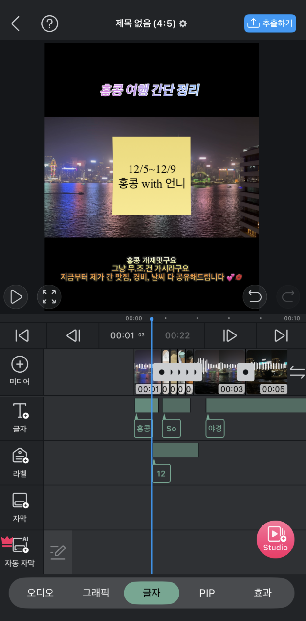 이건 어디까지나 ‘처음 써보는 초보자’로서의 경험이었고, 그런 저도 충분히 편리하게, 그리고 유연하게 편집할 수 있었다는 점에서 VLLO의 편집 흐름 설계는 분명 사용자 관점에 기반한 구조라고 느꼈습니다.